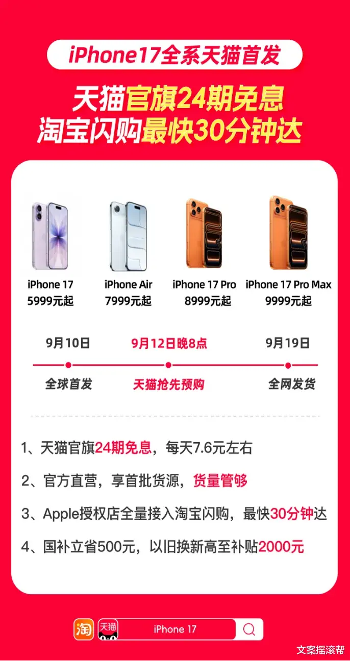 苹果天猫官旗iPhone 17全系新品支持24期分期免息,