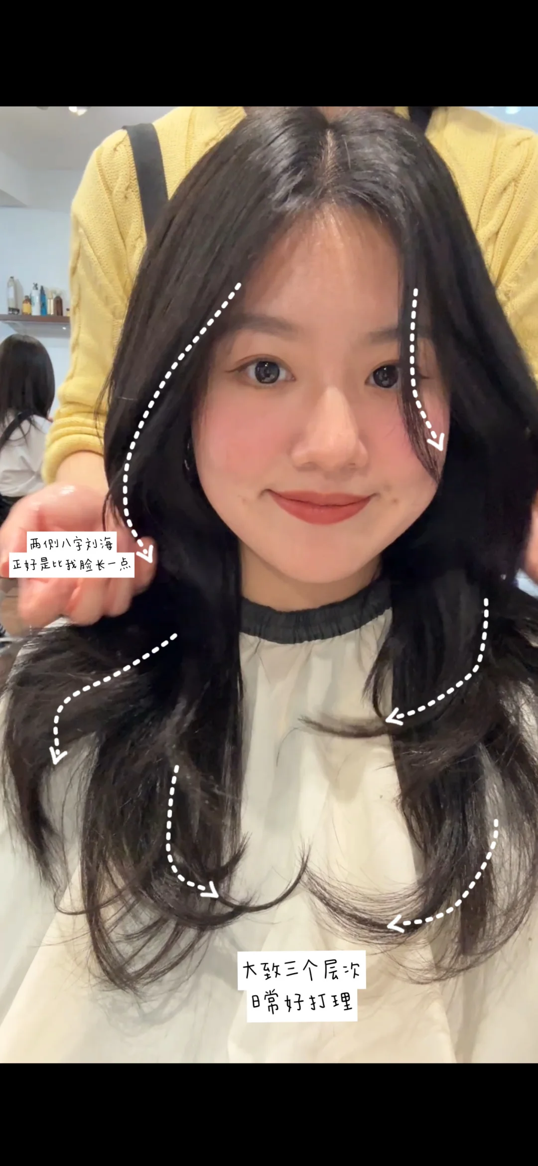 又剪了超级满意的发型来和大家分享啦 很适合长发女生修剪参考(或者是像我一样想把头发留更长的 修剪思路主要是在前半个脑袋 八字刘海-扎发或做造型更加温柔啦 前额头修建了碎发 让我的发际线更漂亮 再是稍许打薄 剪头发不一定要把头发剪短 适当的修剪 会让整体更有层次感更舒服的~