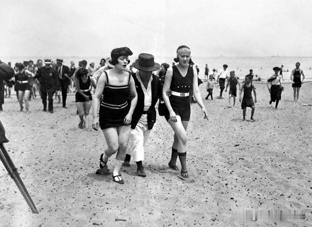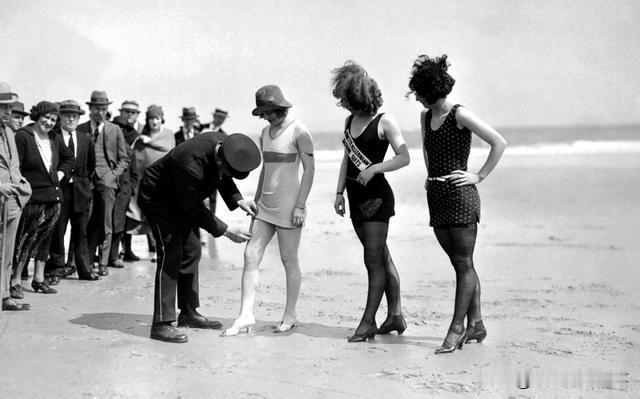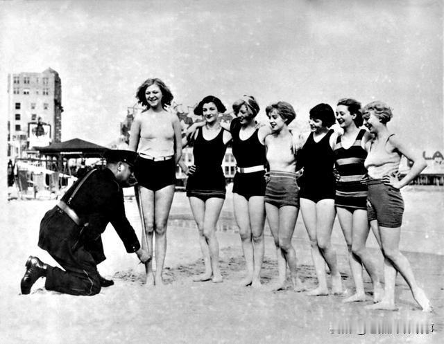 在20世纪初的美国,有一项公共管理措施规定:女性进入海滩等公共场合不得穿着过短的泳衣。 在公共海滩,有专门的风纪警察拿着尺子来回巡逻,随机测量女性的泳衣长度。如果女性的泳衣长度短于膝盖以上6英寸,是要被罚款甚至被逮捕的。