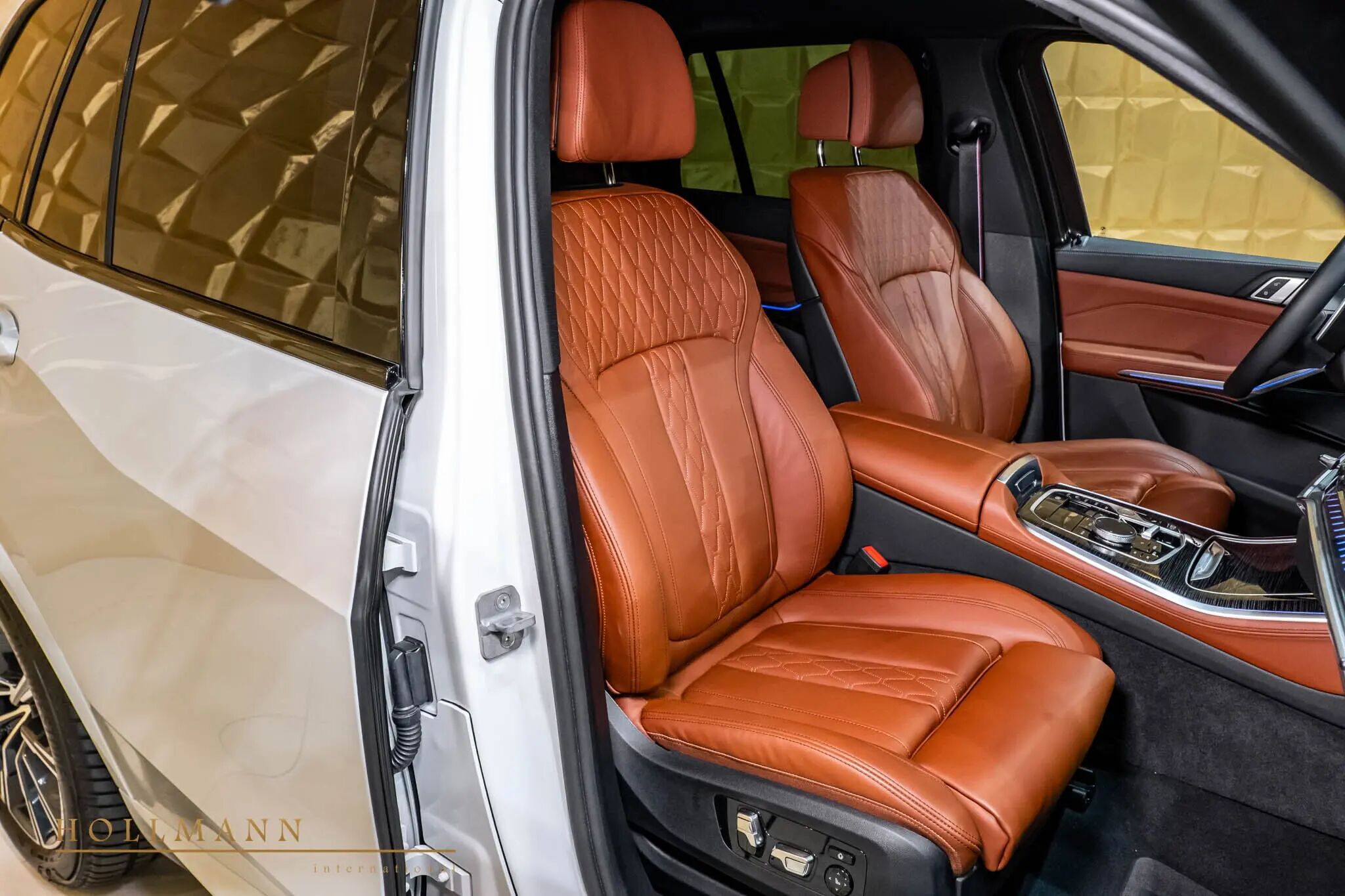车身为阿尔卑斯白车漆,内饰采用干邑棕色皮质搭配精致木纹饰条,20 英寸轮毂搭配防爆轮胎,悬架也针对装甲重量进行了强化升级。同时,它还保留了 M 运动差速器、M 运动排气,以及一台动力强劲的 V8 发动机,性能与防护两不误。
