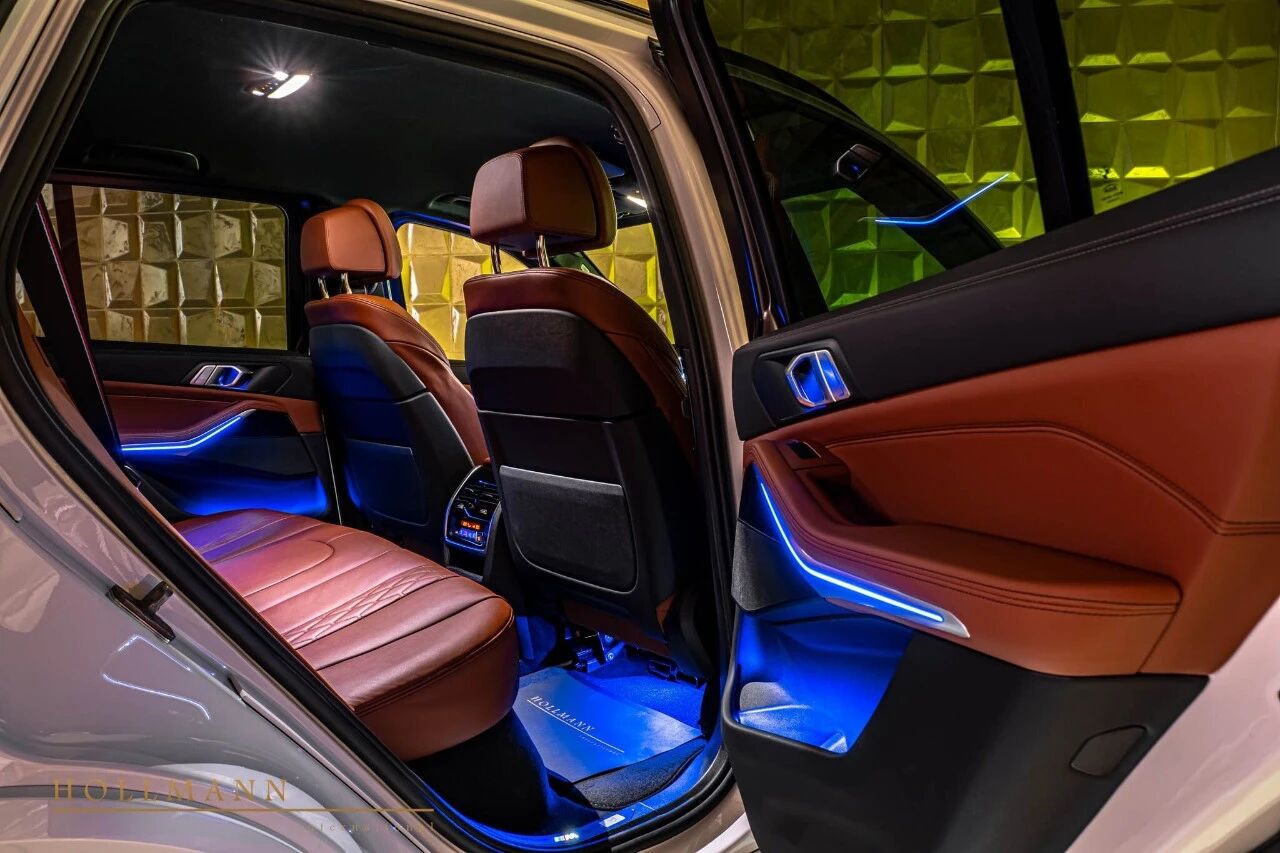 除了核心防弹系统,这台 X5 还配备了暗影套装、前排加热座椅、氛围灯、M 运动真皮方向盘、黑色织物车顶、电吸门、M 安全带、四分区自动空调、自适应 LED 大灯、智能手机互联、远程服务等一系列豪华与科技配置,安全配置更是拉满,完全符合高端防弹车的定位。