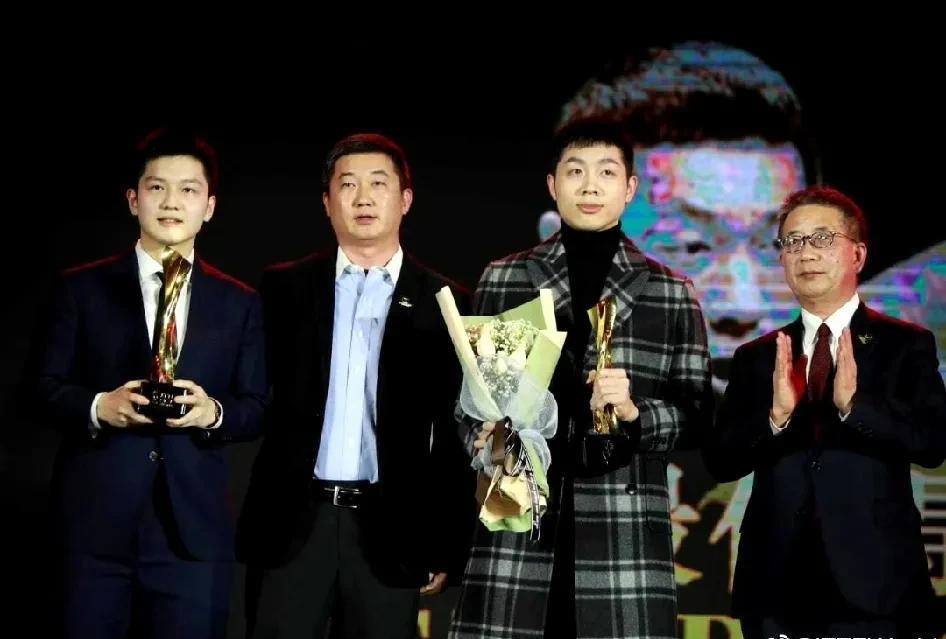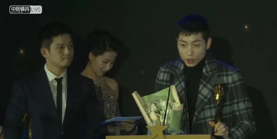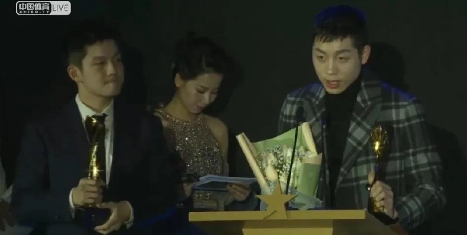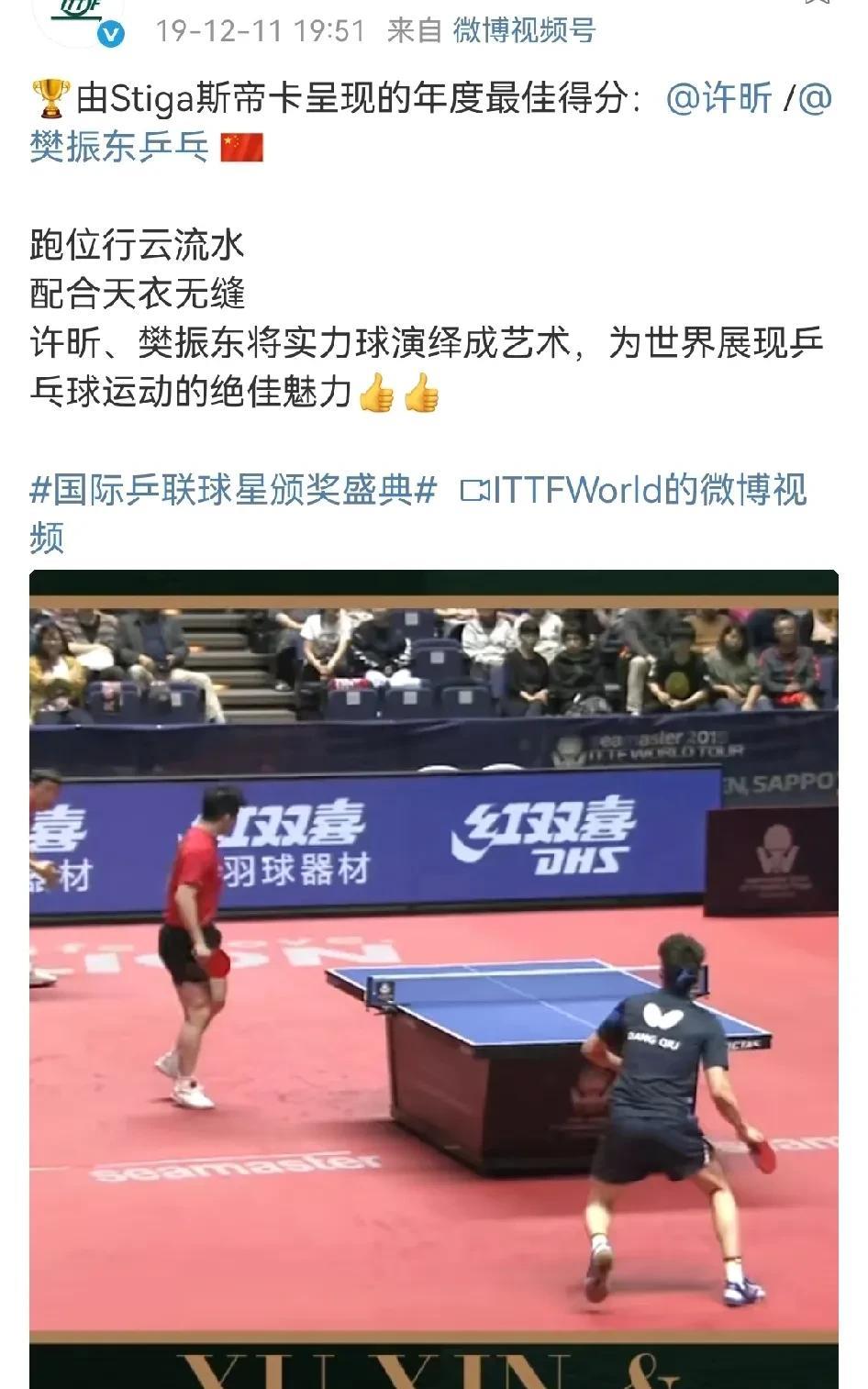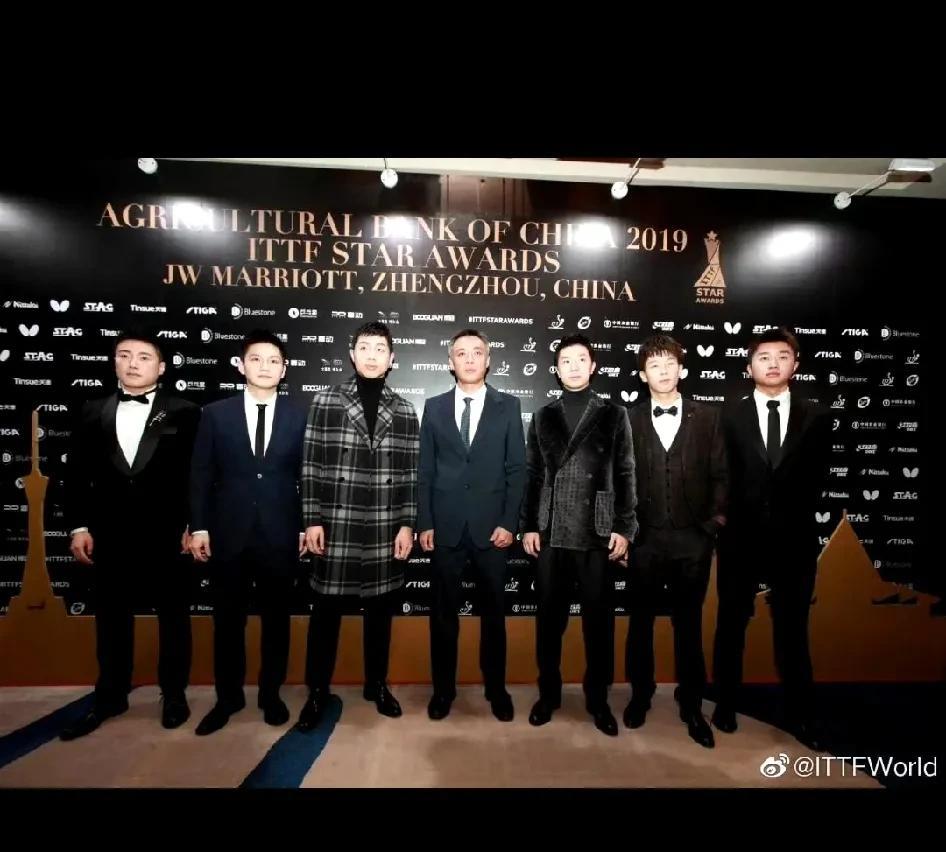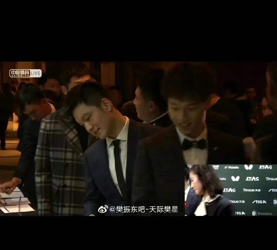 2019年国际乒联球星颁奖盛典 在郑州, 国乒男团出席活动, 难得的正装,走红毯, 拥有单独的拍照环节。 入场前, 大家都留下了手印签名, 搞笑男赵子豪也在列。 年度最佳??分:樊振东/许昕 拧嘴的小胖,认真的听着许昕发表领奖感言,到他就说了句:“许昕削的好,许昕说什么都对。”把全场逗笑了。