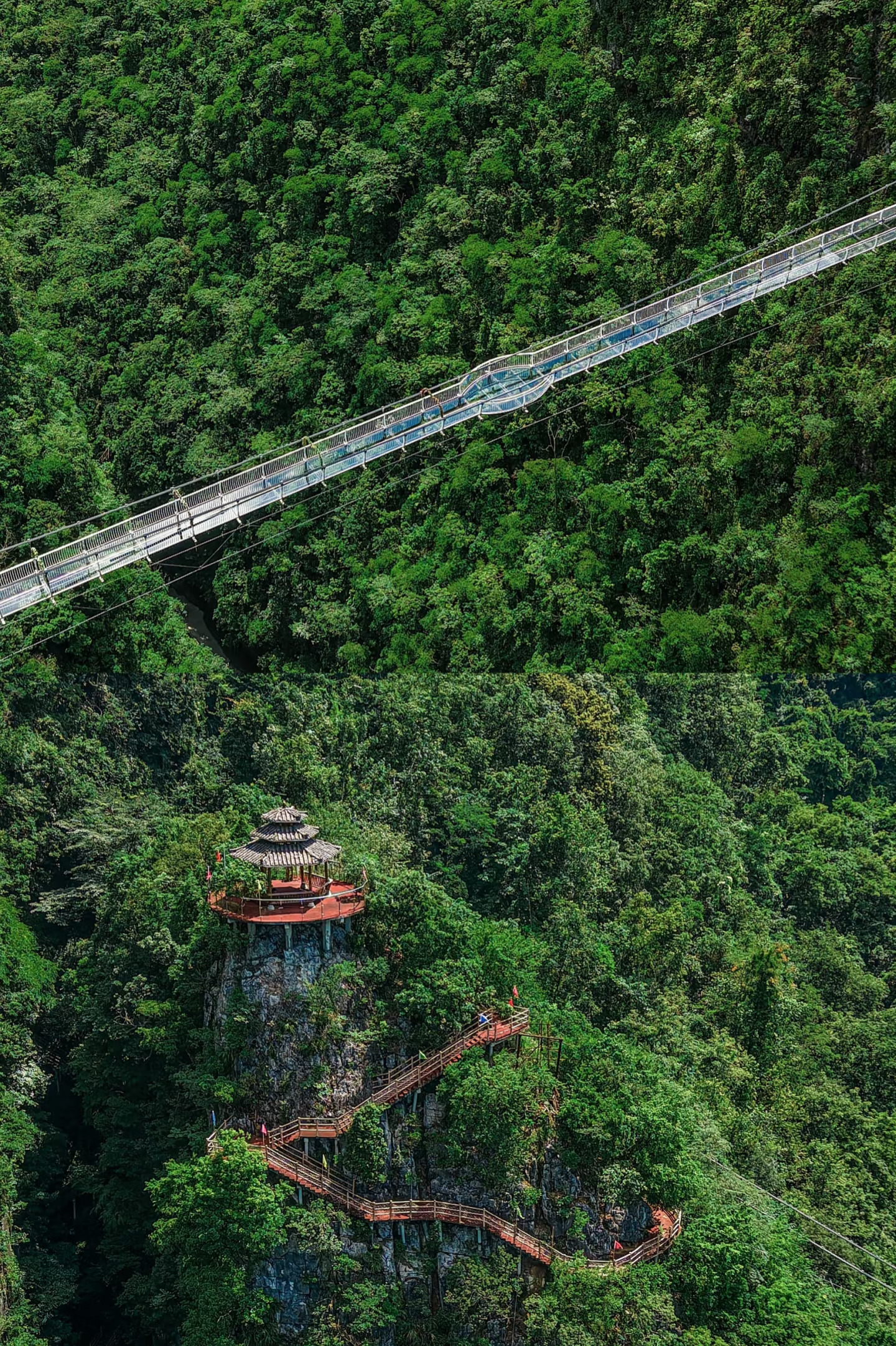 还有玻璃栈道、玻璃桥等网红打卡点,一路美景处处,山巅也能感受到步步惊心的刺激。