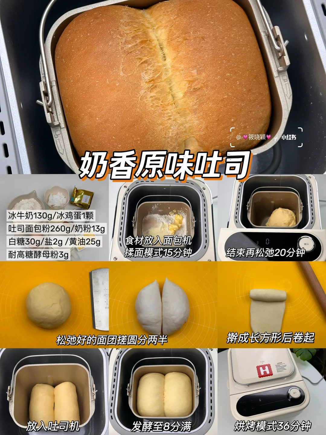 📝吐司配方:冰牛奶130g,冰鸡蛋1颗,吐司面包粉260g,奶粉13g,白糖30g,盐2g ,黄油25g,耐高糖酵母粉3g