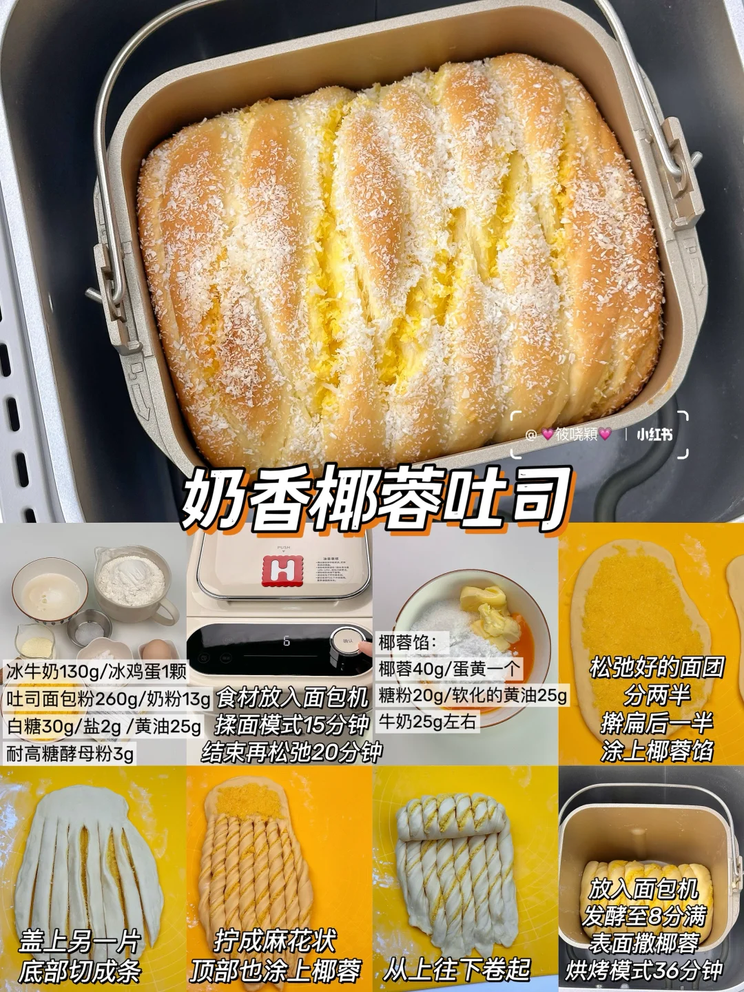 【椰蓉馅:椰蓉40克/蛋黄一个/糖粉20g/软化的黄油25克g牛奶25g左右】