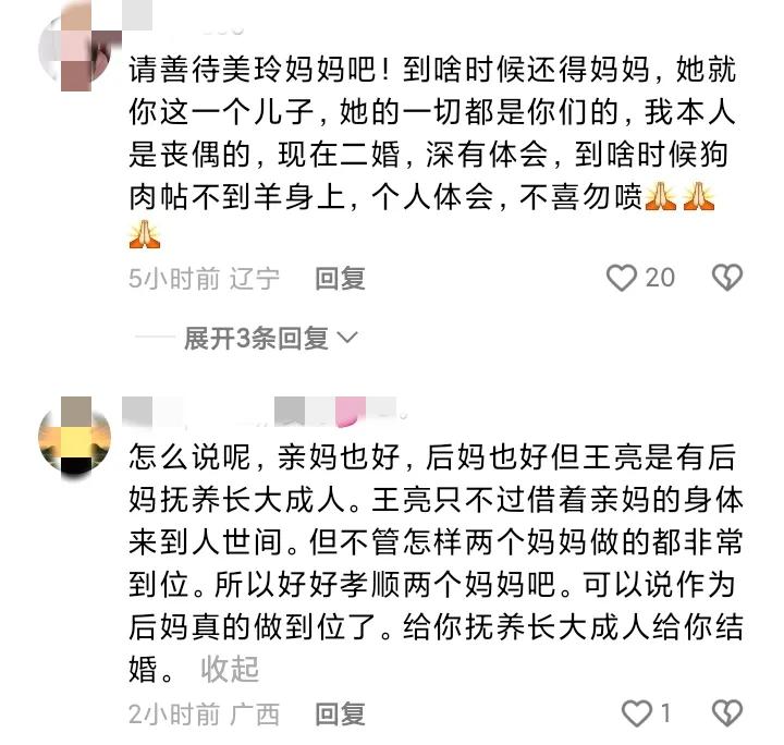 另外,王亮的亲生母亲,与儿子一家也是渐行渐远。