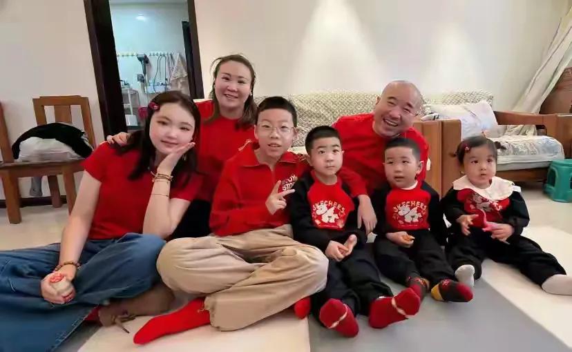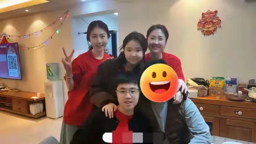 李琳终于出现在了大合影之中,但是远离王亮的两个孩子。
