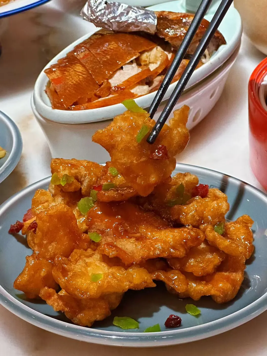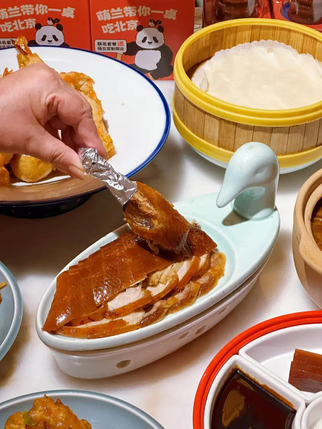 北京大妞实名安利的京菜馆子 和发小儿的据点 一吃吃了18年 量大实在 从没涨过价 还有大北京独一份儿的茉莉烤鸭 不吃后悔 茉莉烤鸭皮酥肉嫩 卷上配菜 再加上那独特的茉莉茶香 真的跟普通烤鸭不一样 吃一口就爱上 梨球果仁虾居然18年没涨价 虾皮酥脆 虾肉紧实 梨球清甜解腻 牛肉烩饭一口回童年 米粒吸饱了牛肉汤汁 软糯入味 碳水脑袋狂喜 🆓的豆汁儿可以来挑战一下~ 最后来份奶fufu的干酪鱼 顺滑不甜腻 📍位置离北京南站3公里左右↔️ 旅游拖行李直接冲 吃完还能🆓领萌兰周边 这波情怀sha我服了