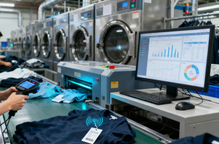 洗衣管理行业(涵盖商业洗衣厂、酒店洗衣房、干洗店等)长期面临衣物识别效率低、洗涤流程追溯难、客衣错发漏发、布草资产流失等痛点。