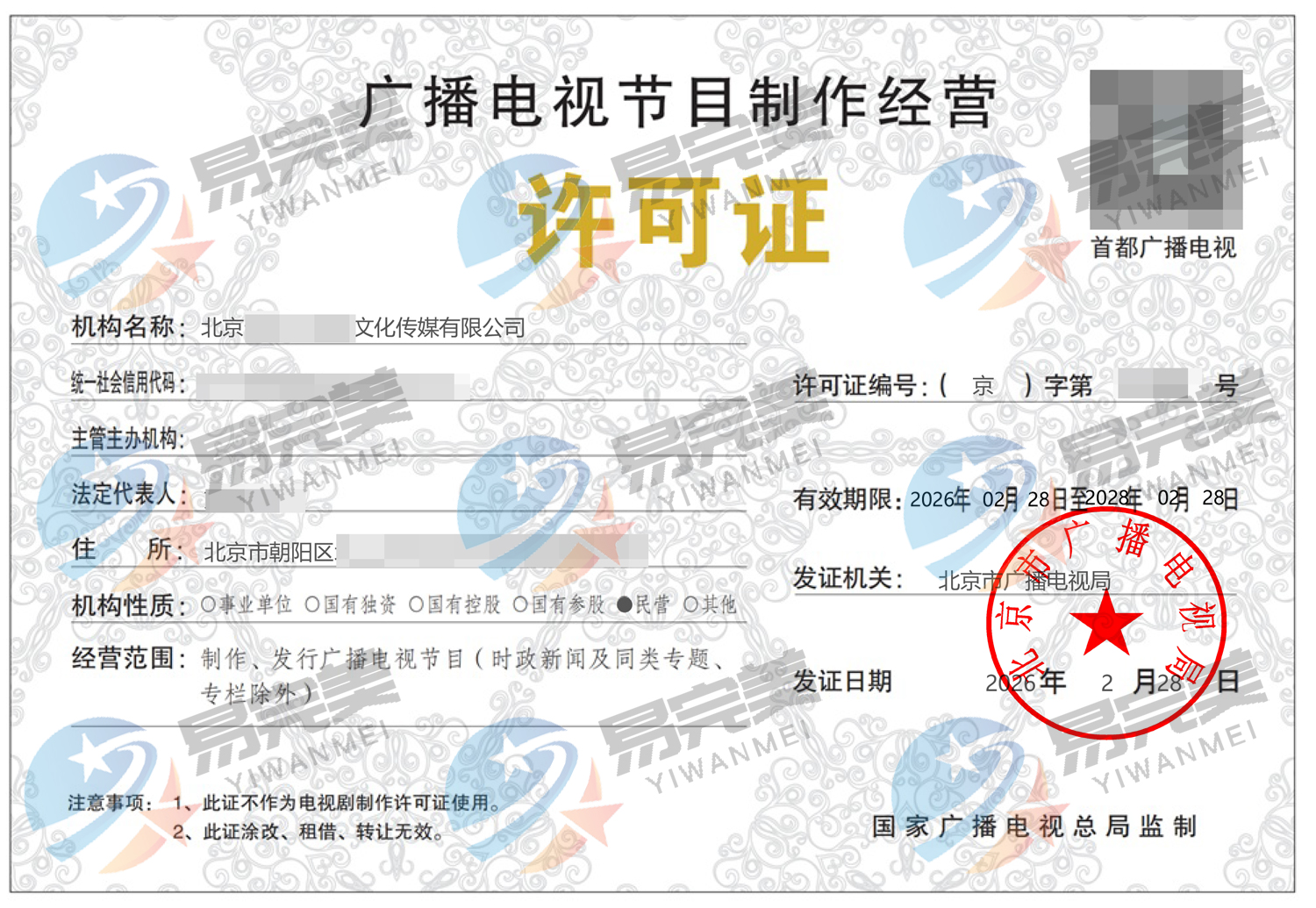 北京新下2026年02月28日广播电视节目制作经营许可证
