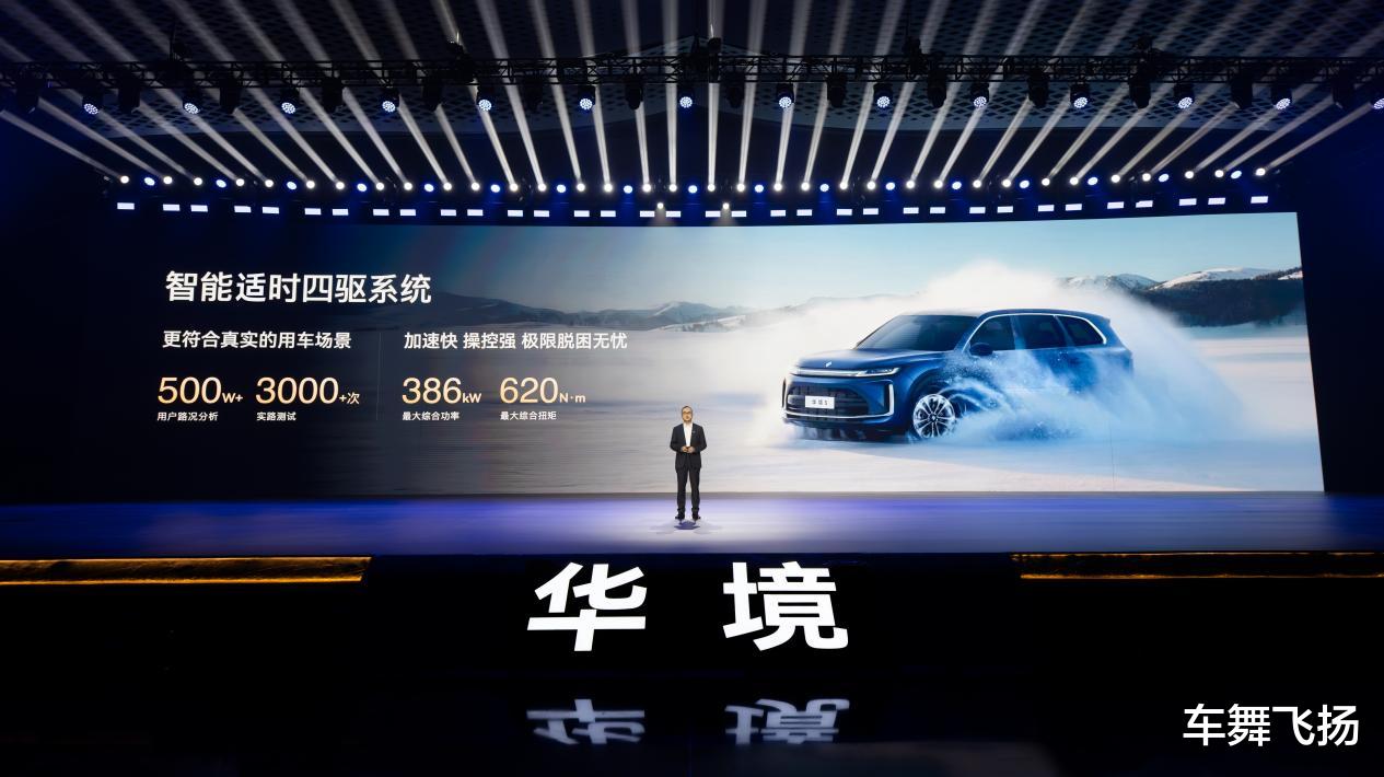 华境S以高效集成带来更高的出行品质和更低的用车成本。新车搭载灵犀动力3.0,匹配智能适时四驱系统,综合功率386kW、峰值扭矩620N·m,百公里加速5秒级;四驱版馈电油耗6.98L/100km,两驱版低至5.98L/100km,满油满电续航超1100km,大幅降低用车成本。同时,在雪地麋鹿测试中,华境S以六座满员状态跑出48km/h优异成绩,展现出强大的冰雪路面操控稳定性,全场景出行都从容。