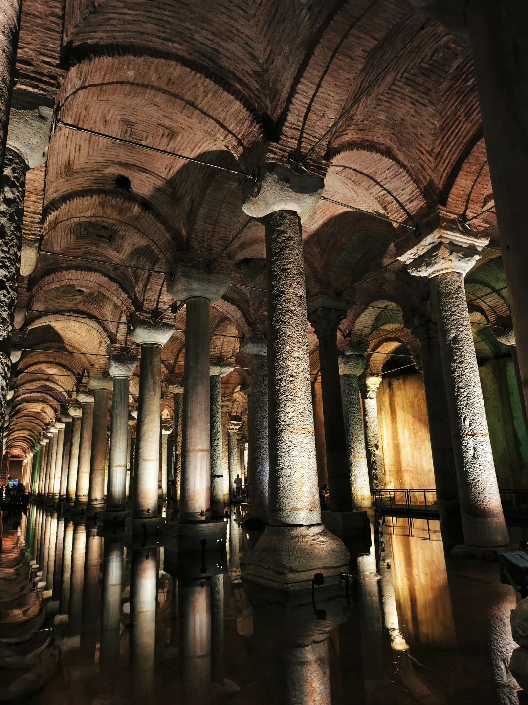 拱顶石柱映着水波光影,安静又神秘,是拜占庭时期用于蓄水的工程奇迹。