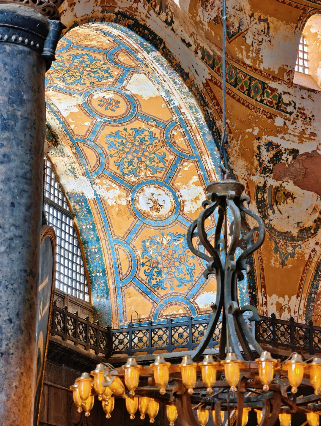 金色穹顶高高悬挂,拜占庭马赛克与伊斯兰书法共存,冲突却和谐。