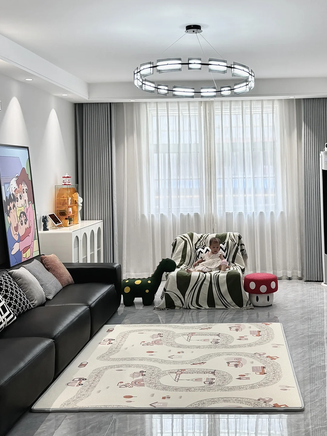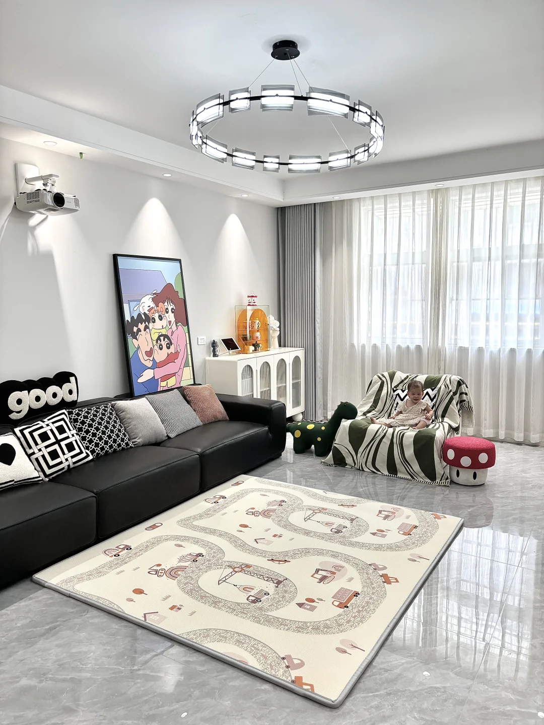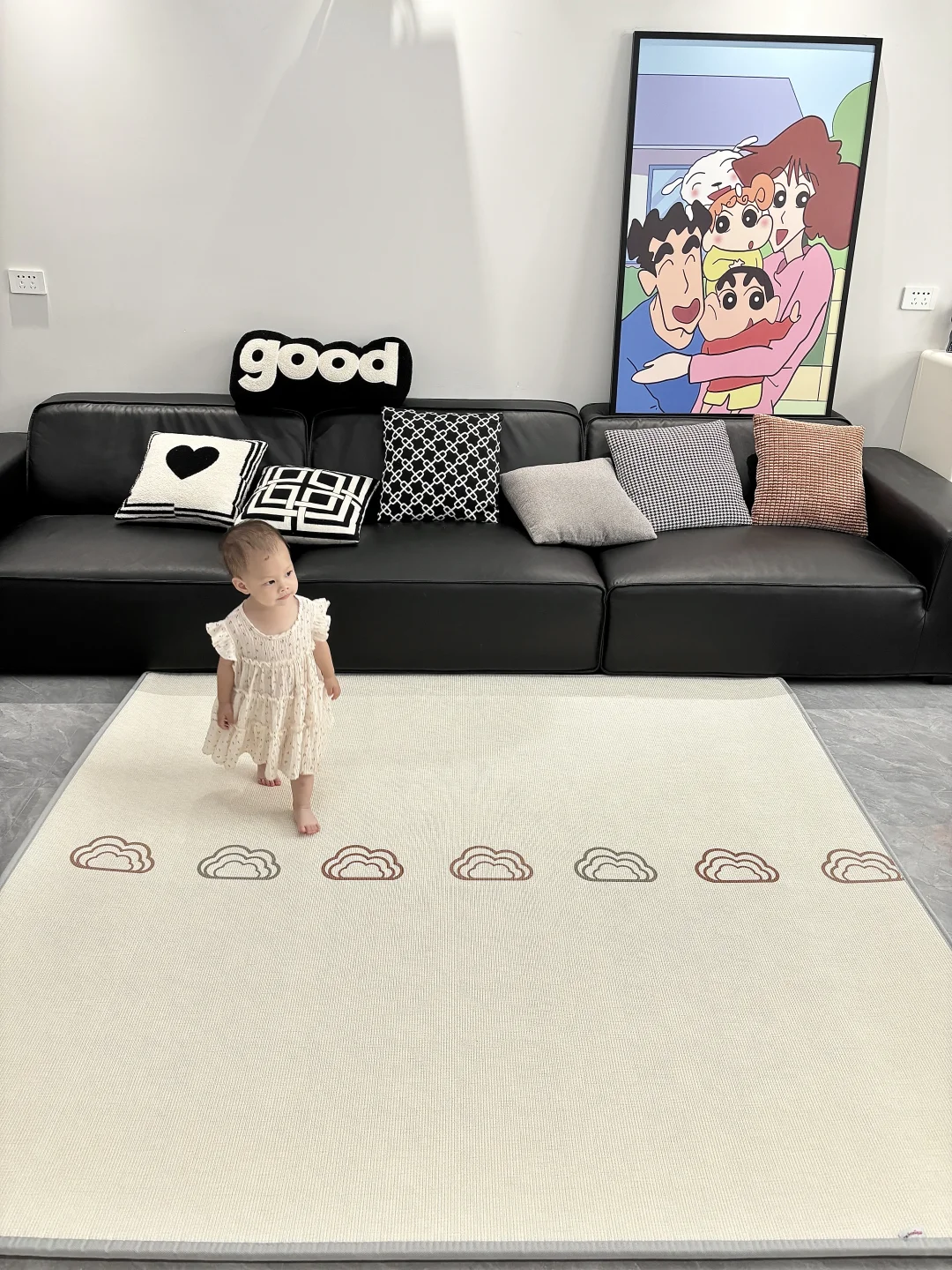 一岁四个月的家能有多快乐 不约束你 不定义你 除了专属儿童房外 客厅也是你的天下 铺了曼龙XPE爬爬垫 2.5cm厚度摔倒了也不怕 你可以放肆的玩 开心的笑 有点羡慕你 因为我小时候要懂事听话 没有这样精神物质富足的童年 珍惜还没到鸡飞狗跳的年纪 享受母慈子孝的快乐时光