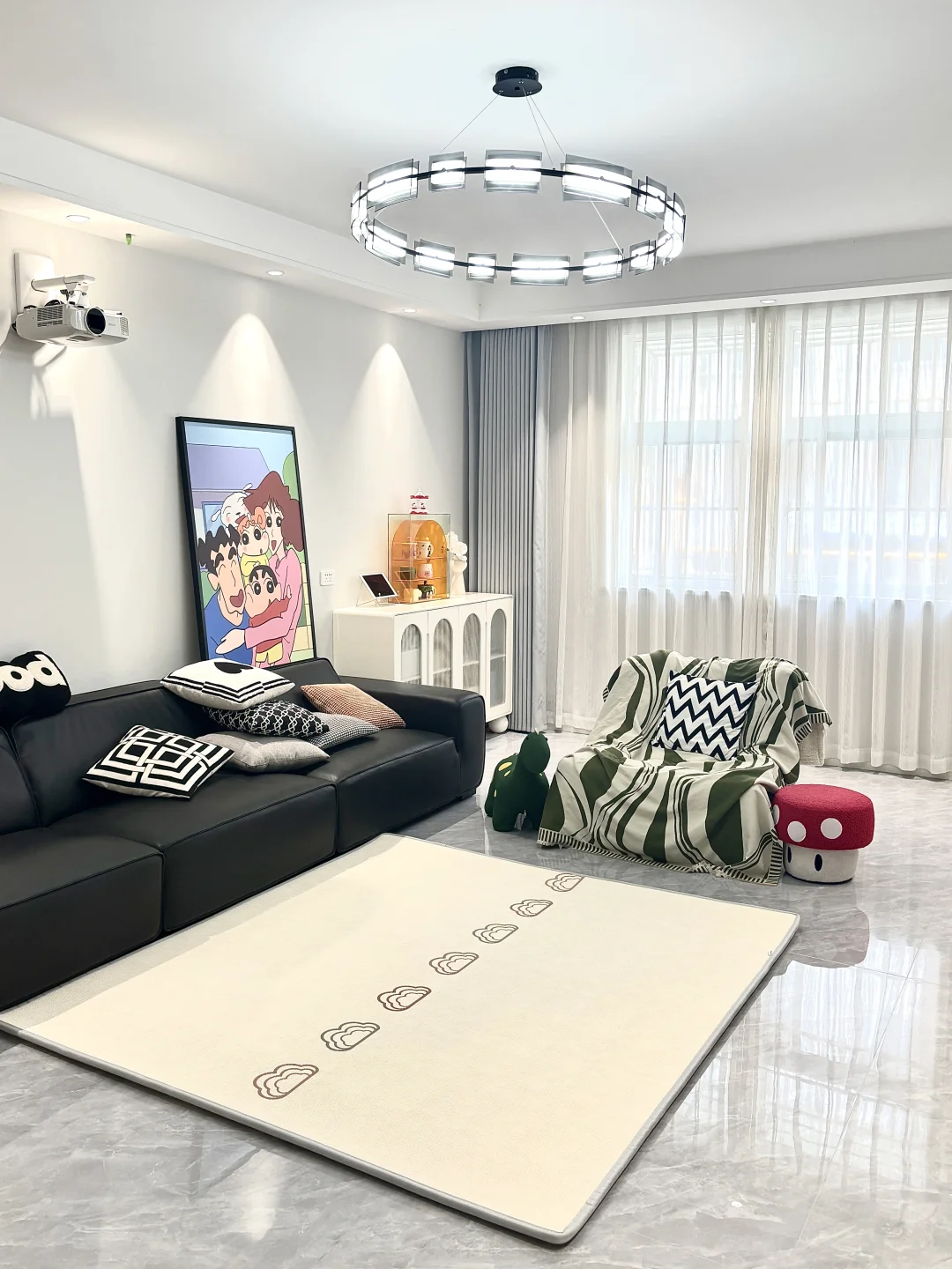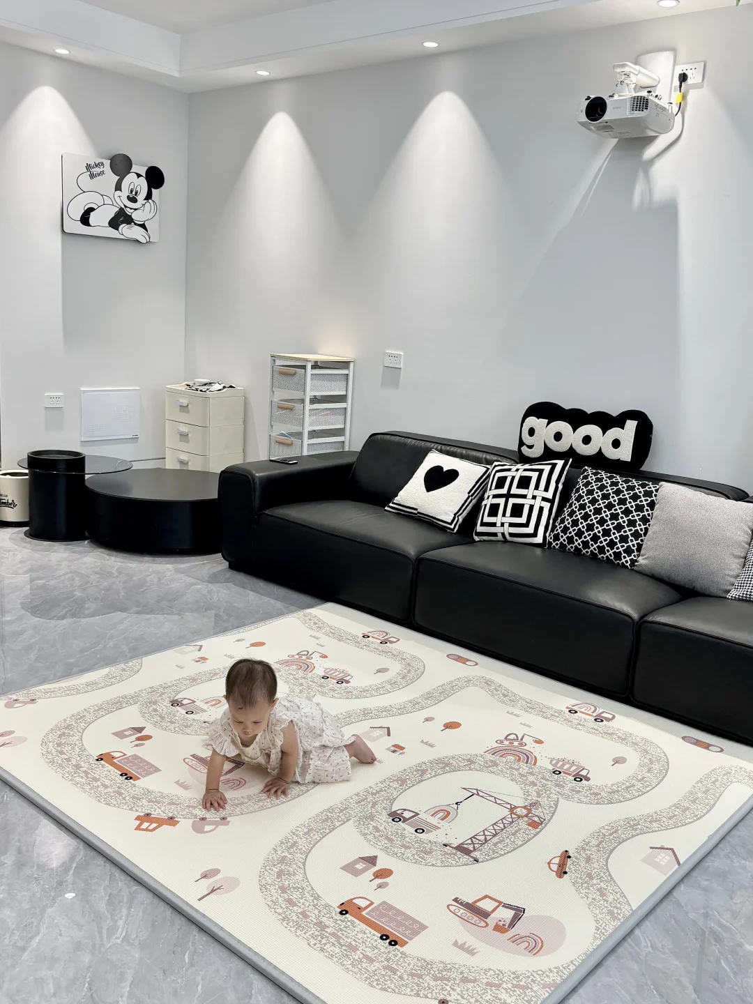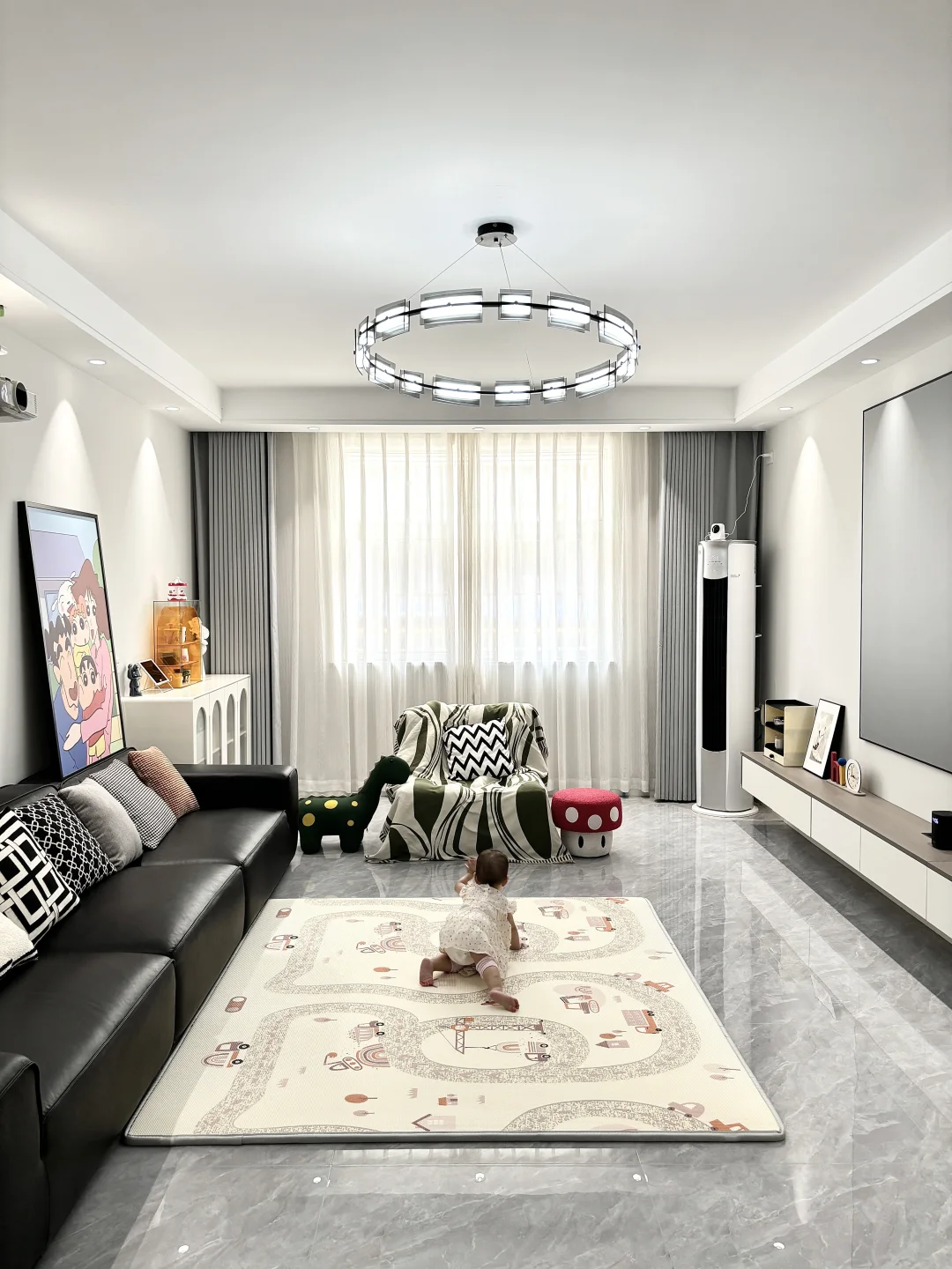 一岁四个月的家能有多快乐 不约束你 不定义你 除了专属儿童房外 客厅也是你的天下 铺了曼龙XPE爬爬垫 2.5cm厚度摔倒了也不怕 你可以放肆的玩 开心的笑 有点羡慕你 因为我小时候要懂事听话 没有这样精神物质富足的童年 珍惜还没到鸡飞狗跳的年纪 享受母慈子孝的快乐时光