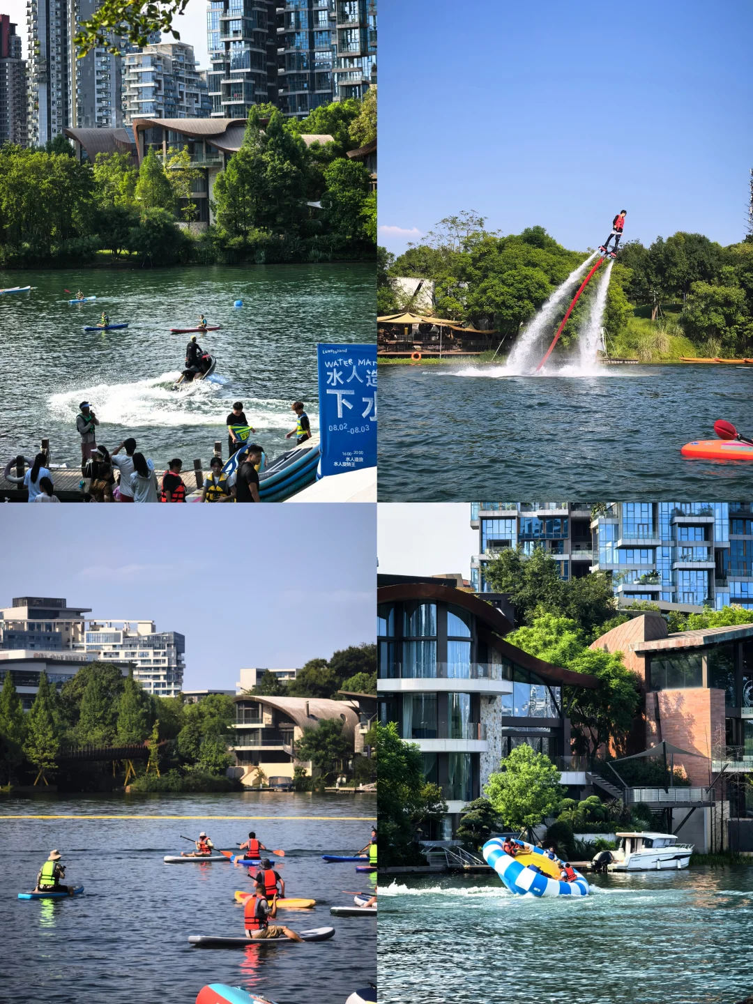 另外还赠送了麓湖双人门票和耍水套餐。本次入住恰逢水人节期间,下午四点后太阳没那么强烈的时候开始。酒店有麓湖景区接送专属车辆,桨板,游泳,摩托艇等水上项目和草坪音乐节,沉浸式体验南法一样热烈的夏天。