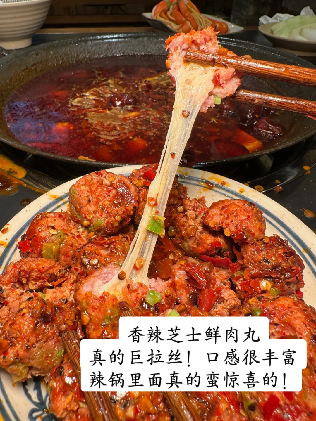 坪洲一家居民楼下的重庆火锅店!! 很有烟火气 菜品都是手工做的 在深圳好难得… ✅香辣芝士鲜肉丸巨拉丝 口感很丰富!!算得上是门店的一个特色菜品 煮辣锅也好好吃 ✅海苔蛋炒饭加入的海苔真的是灵魂,口感更丰富了 炒饭很有锅气 ✅杨枝甘露和冰汤圆都料好足,特别解暑又解辣🥵 ✅辣卤系列一定要早点来吃!!来晚了就没了 每天都是限量卤的 肥肠和牛腩都好好吃很入味!