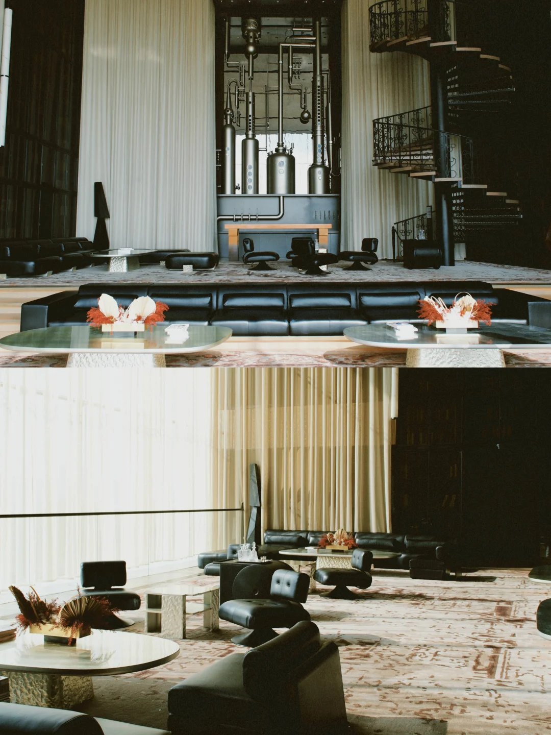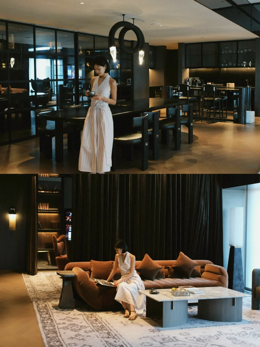 5楼的休闲厅有家的感觉,但又充满了极强的艺术感,黑色为主色调,能让人放松沉静。