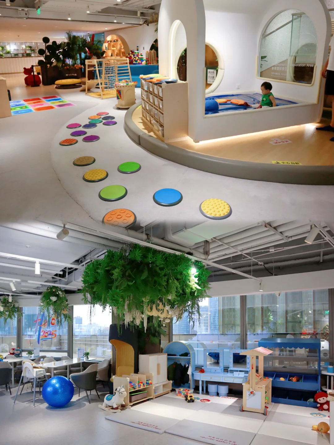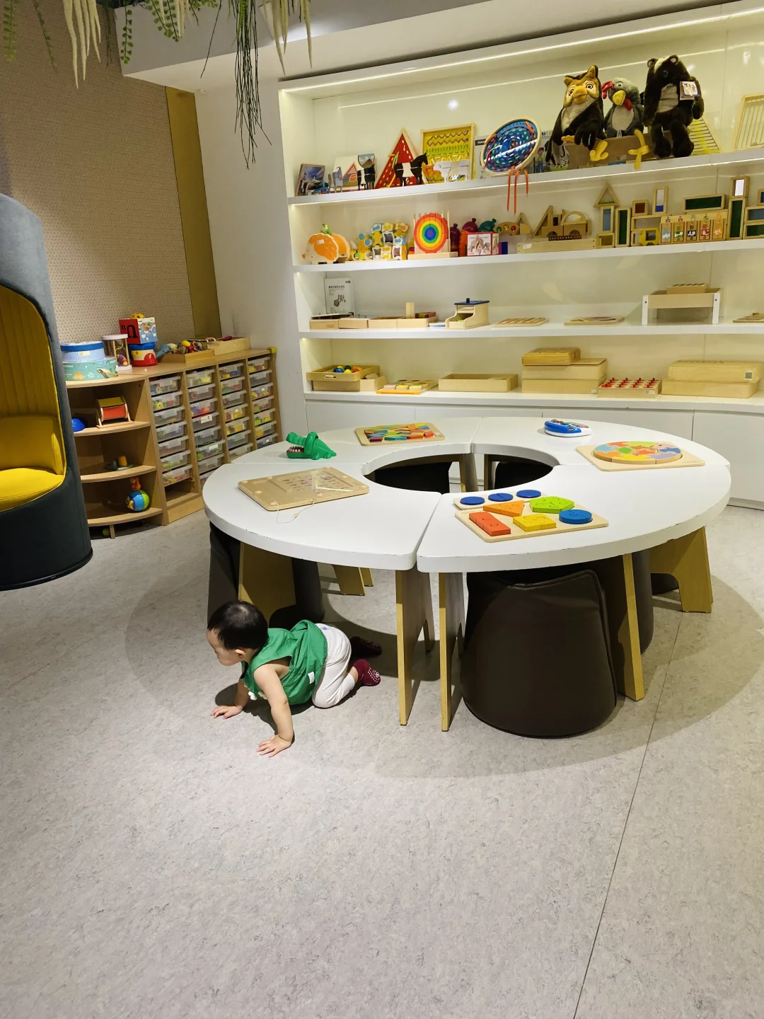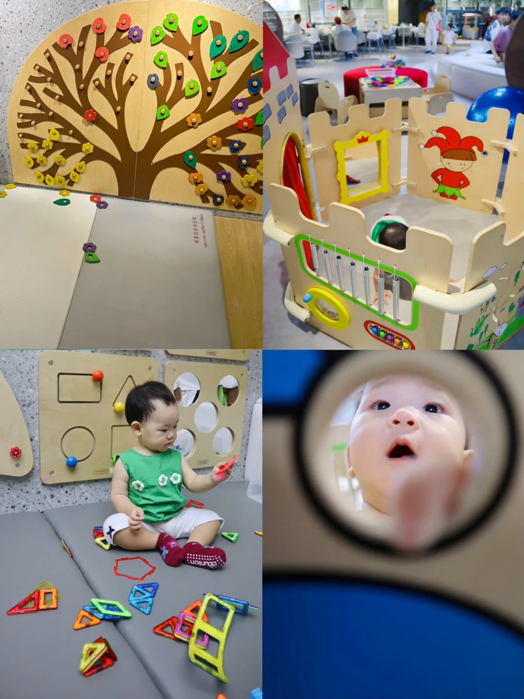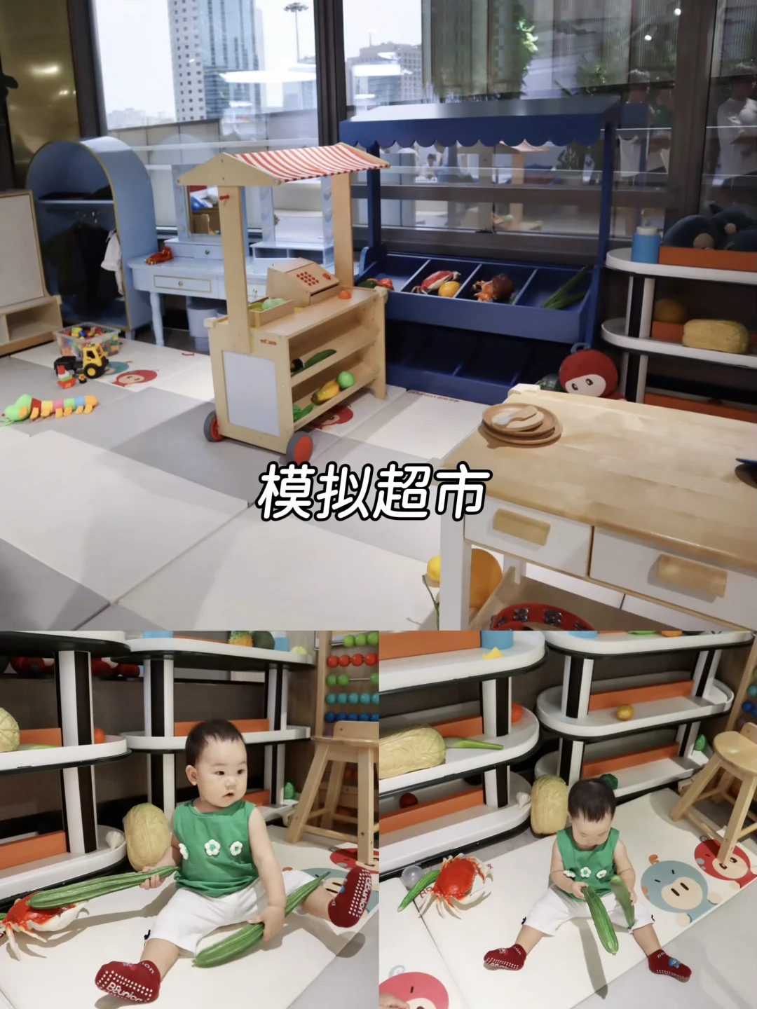 里面环境不错,很多蒙氏玩具,宝宝玩得挺投入。设施都是软包,小宝宝能放心爬、练习走路🚶♂️。选用的绘本中英结合,很适合早教启蒙📖。有宝宝的用餐区域,还有微波炉,可以自带辅食,可以温奶🥛。