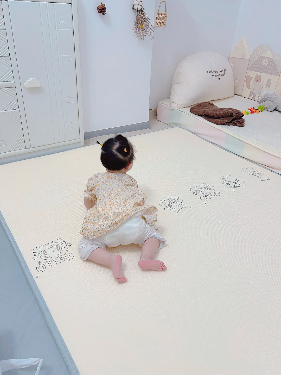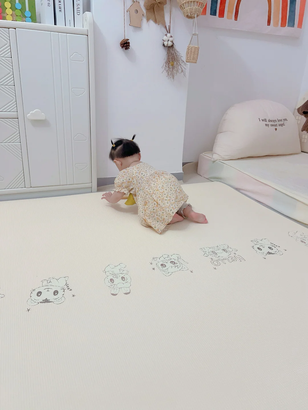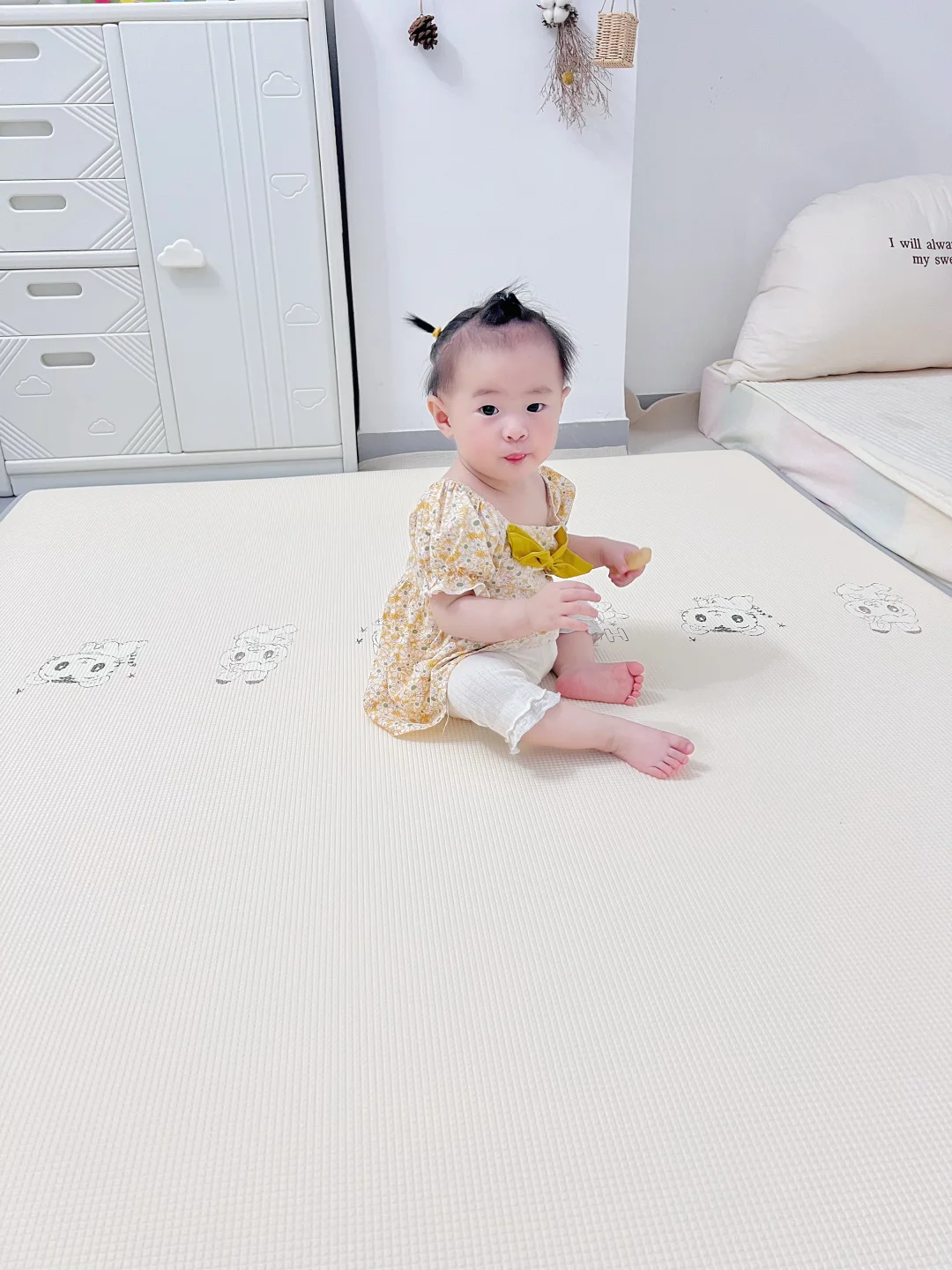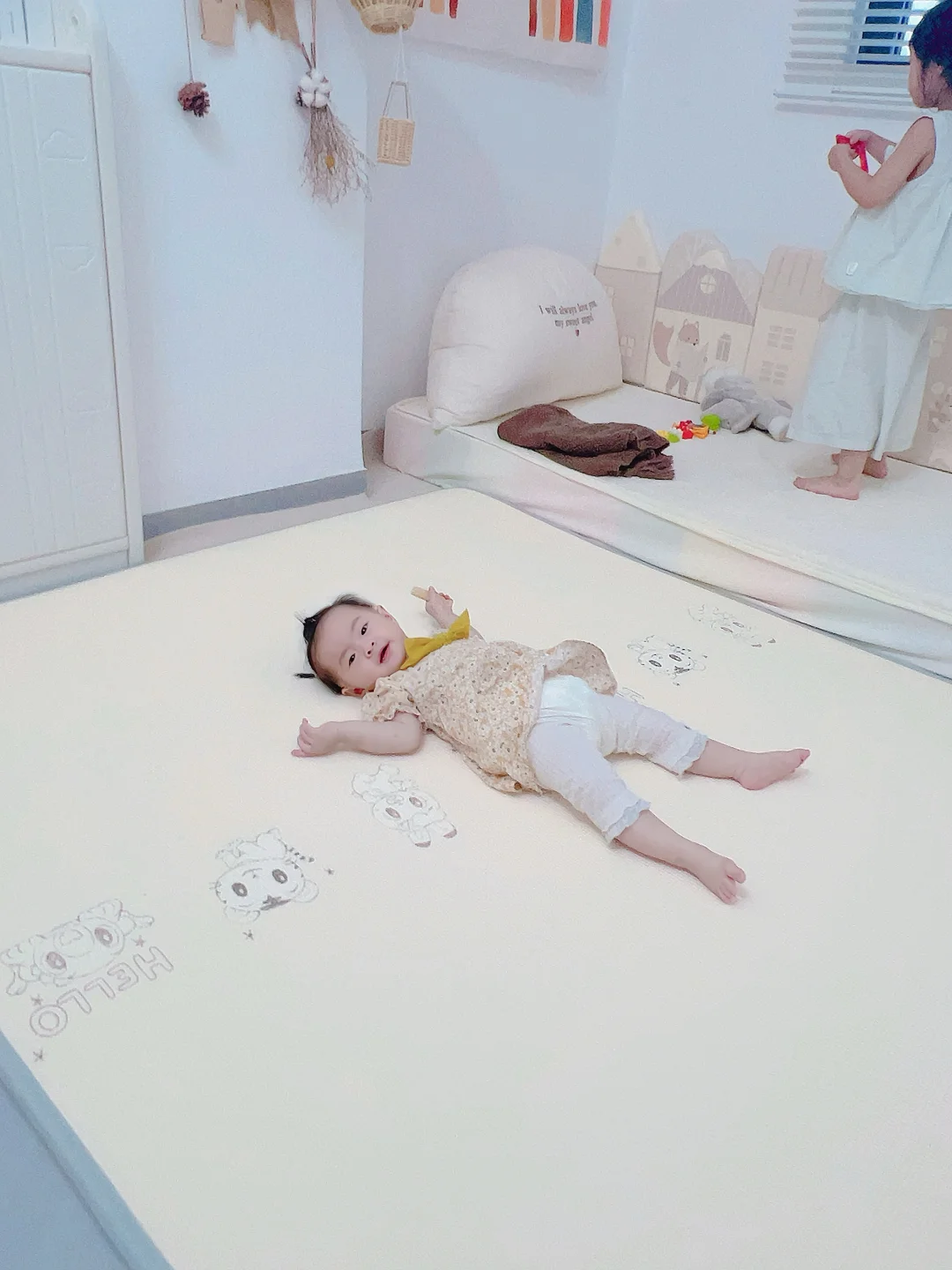 一人带娃有时候不得不走开,家里瓷砖最担心小宝磕磕碰碰,姐姐虽然细心,但是架不住小宝调皮呀🙈 万能爬爬垫上线🧵 小宝不管摸爬滚打都不担心 这次给她安排了2cm 就算去做饭 去做家务 姐姐一个人看妹妹也游刃有余 背面姐姐自己还玩起了宫格游戏😎😎