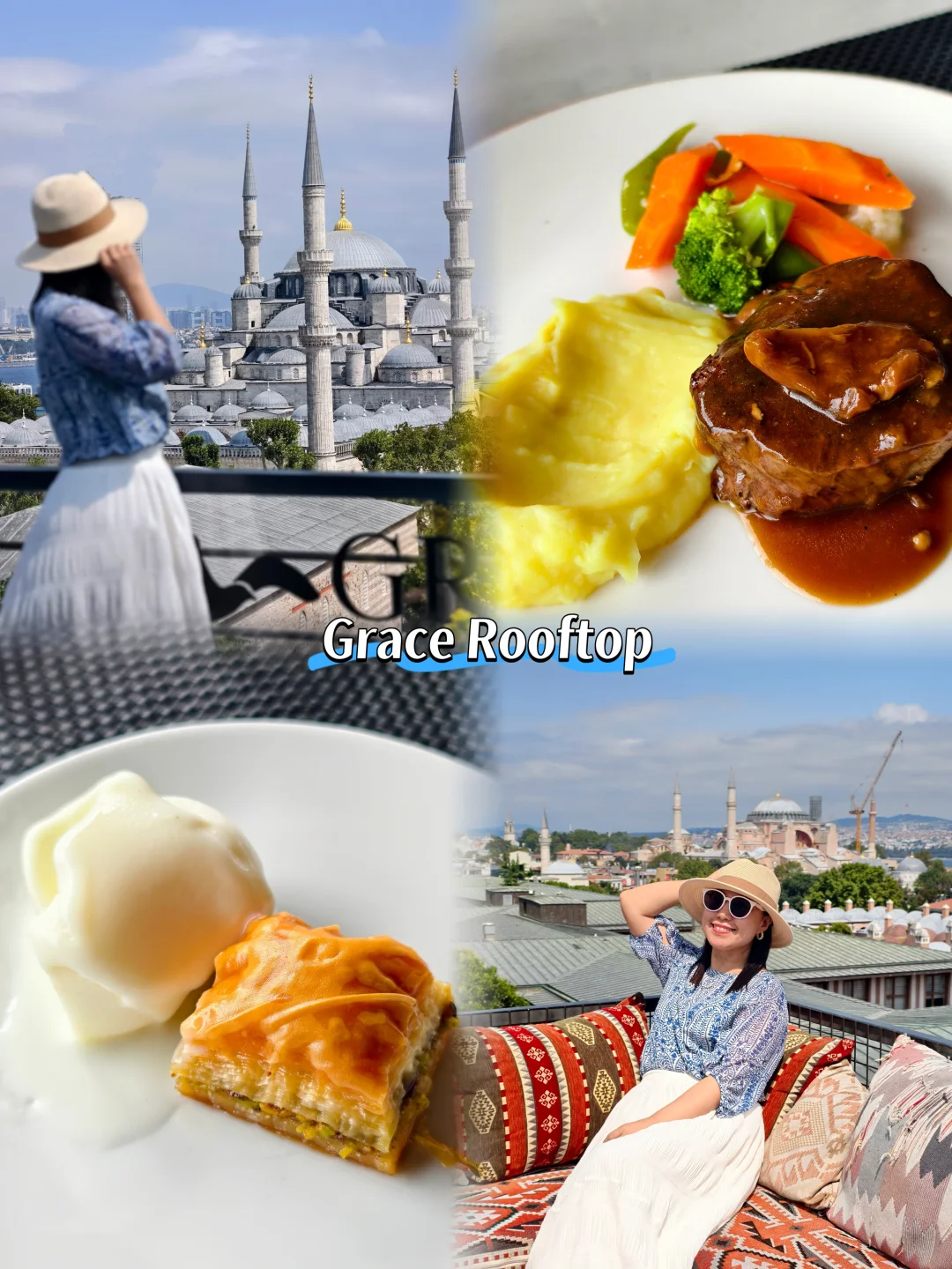 ❷ Grace Rooftop — 餐厅楼层就能远眺蓝色清真寺和阿亚索菲亚,屋顶露台视觉更佳,满满土耳其风情装饰。