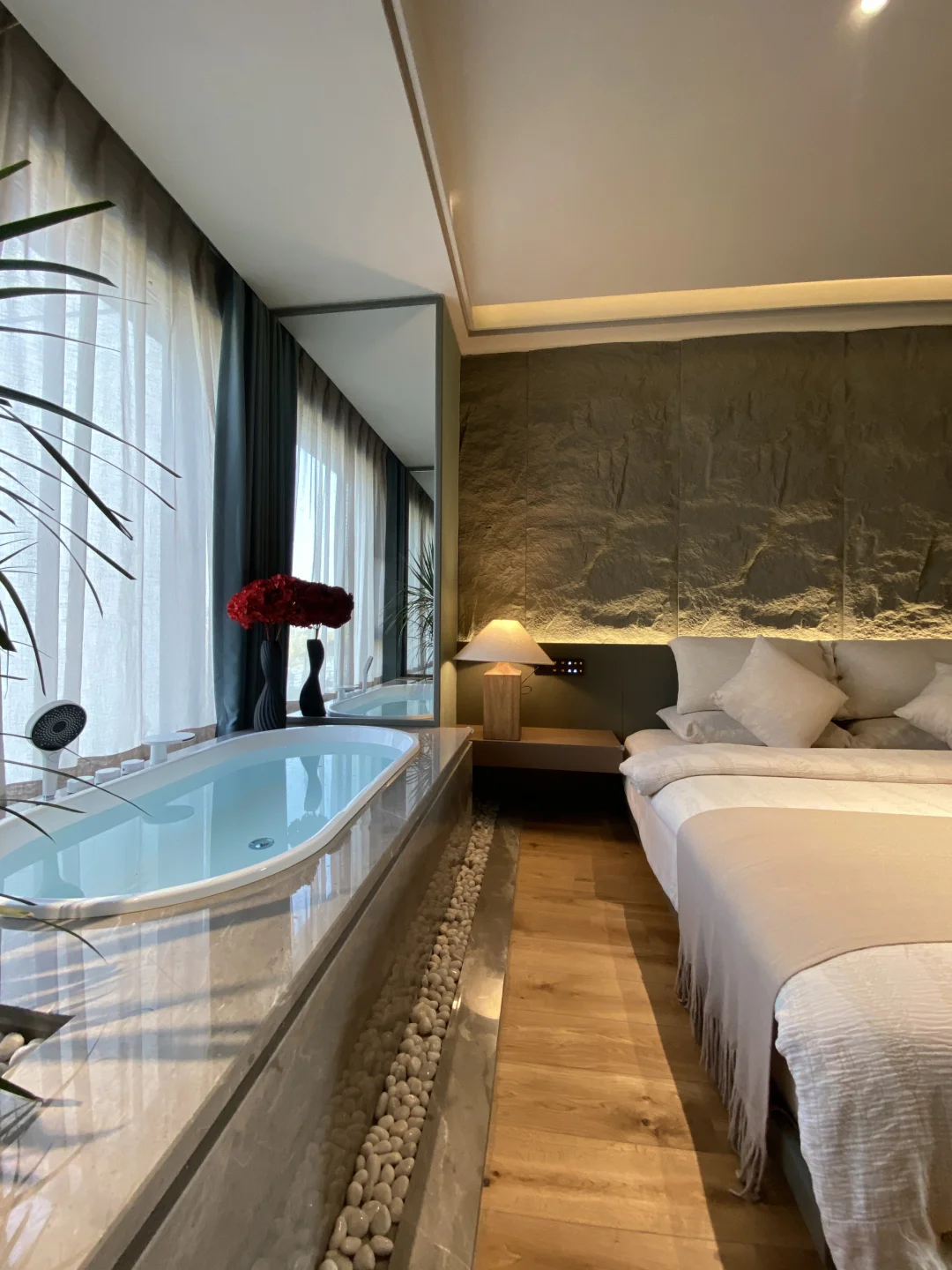 🏡整个酒店装修很高级,服务很好,有点东南亚 偏泰式的风格,房间的窗景简直是一绝!酒店配套设施齐全,有餐厅还有泳池🏊🏻♀️,每一处的设计都深得我心💛