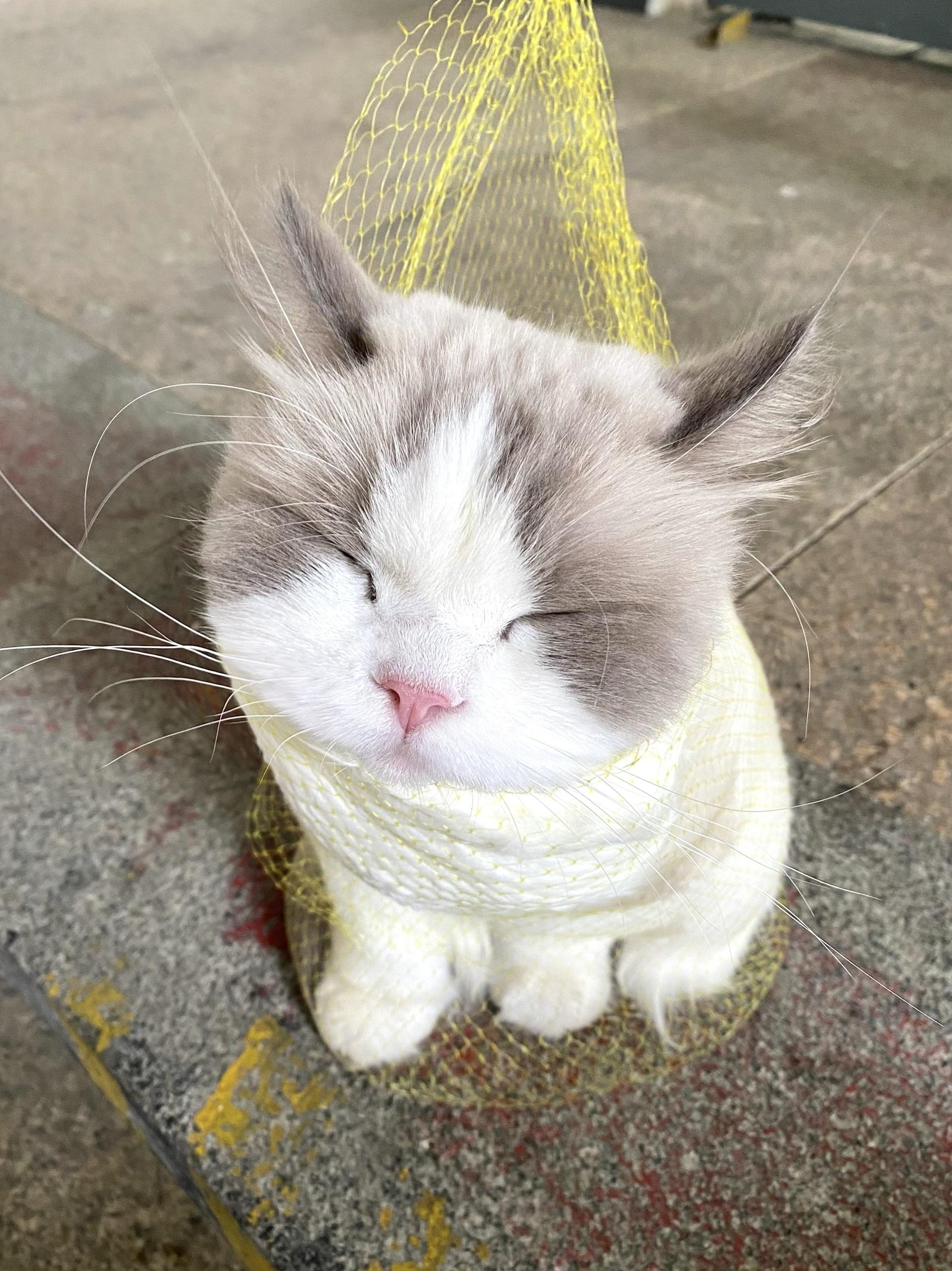 当我的航空箱摔坏了…而小猫又要去体检 于是路过的保洁阿姨给我掏出一个兜🫨