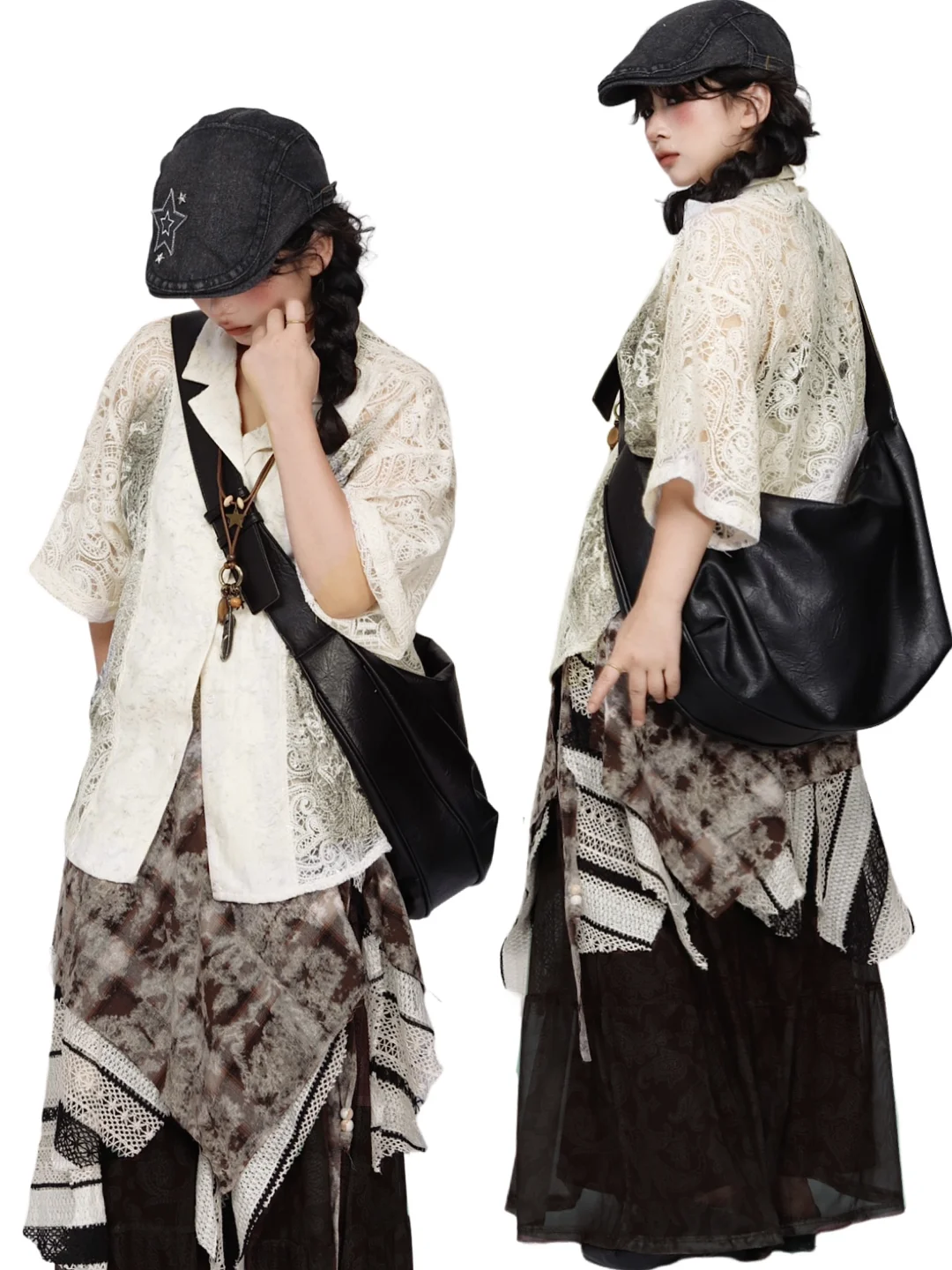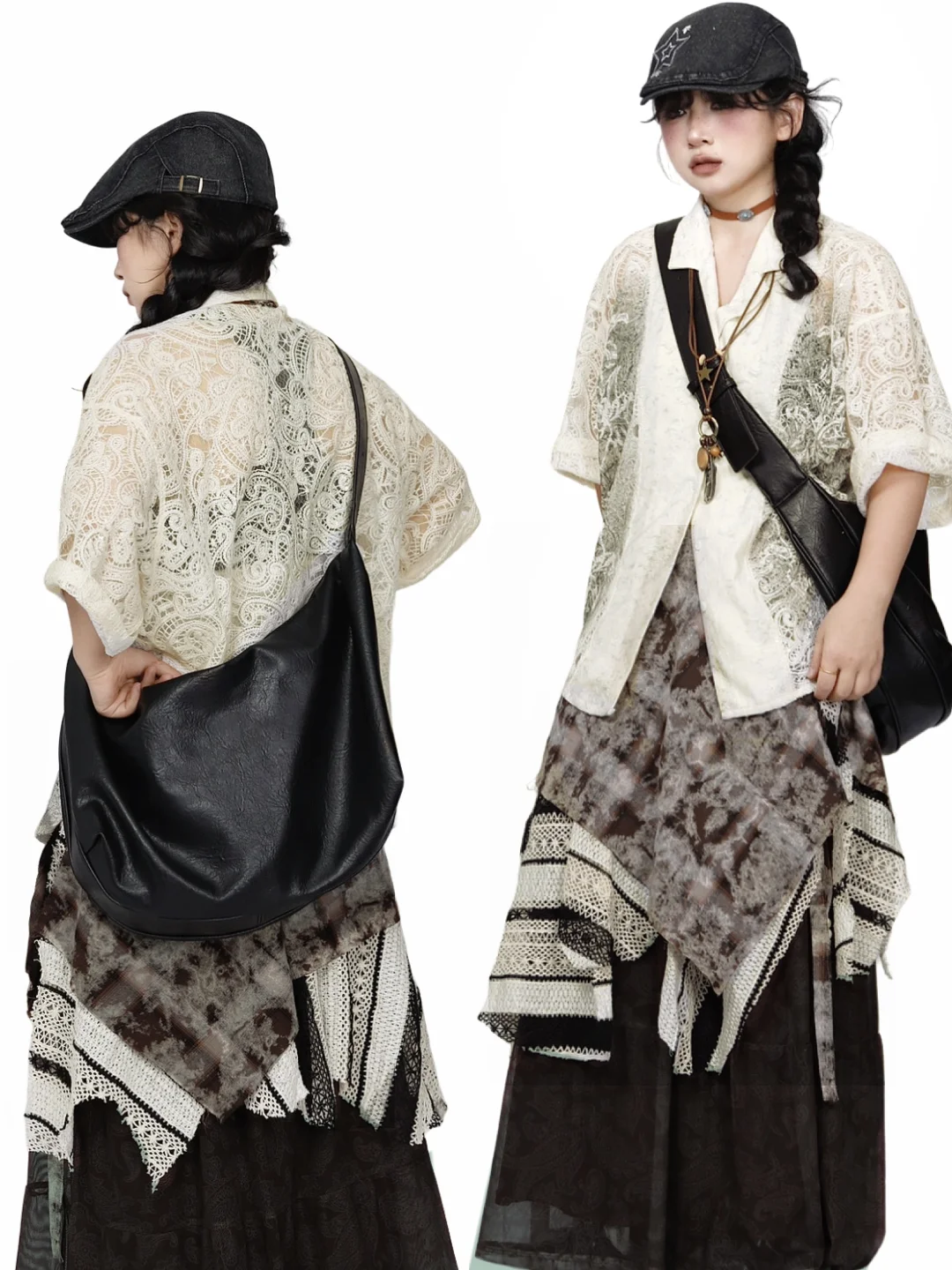 *复古艺术生⛲️蕾丝衬衫➕多层次不规则裙~