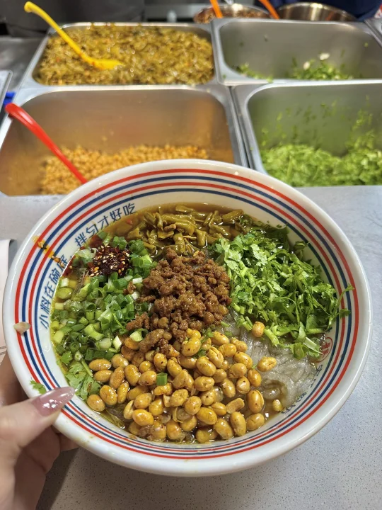 这碗真的惦记好久了!终于去欧亚卖场品尝一下! 除了酸辣粉,还有土豆粉、面条、米饭,因为第一次去就选了酸辣粉和饼的套餐。 酸辣粉真的好吃!粉真的又弹又软,汤特别有味道,饼更好吃!外皮酥脆!好大一个很实惠~ 店里小菜都是免费加的,泡菜萝卜一定要加,好吃又解腻! 📍欧亚卖场18-1门
