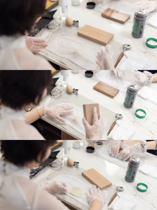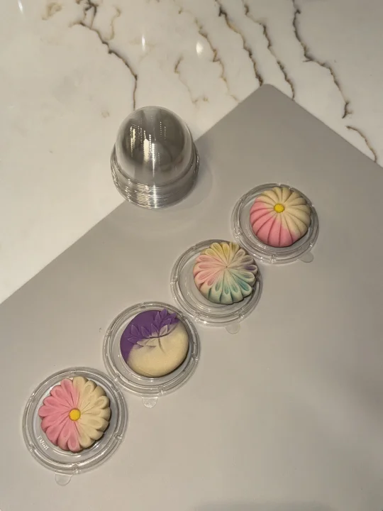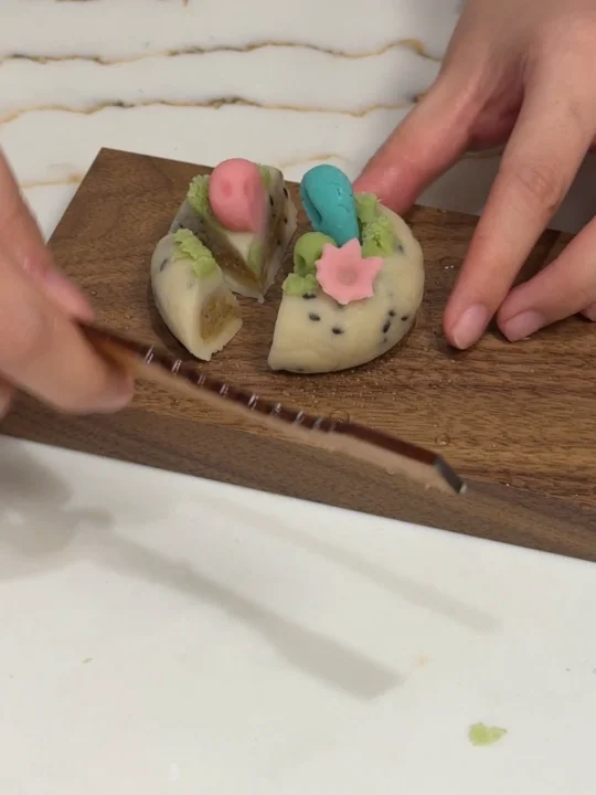 蕞考验耐心的是做花环,压出来细腻得像文思豆腐。接着是捏两只小兔子和小花。