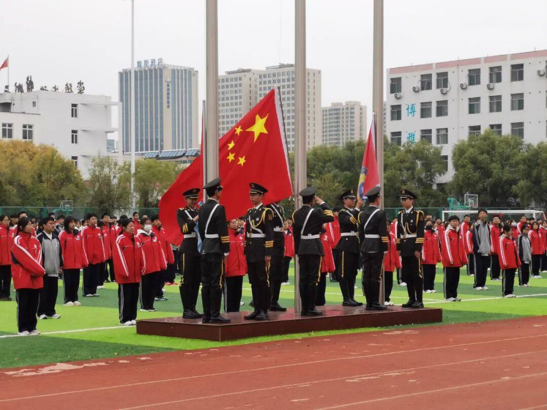 伴随着激昂的《义勇军进行曲》,五星红旗冉冉升起,全体师生肃立行注目礼,青春与收获意识在庄严肃穆的氛围中悄然扎根。
