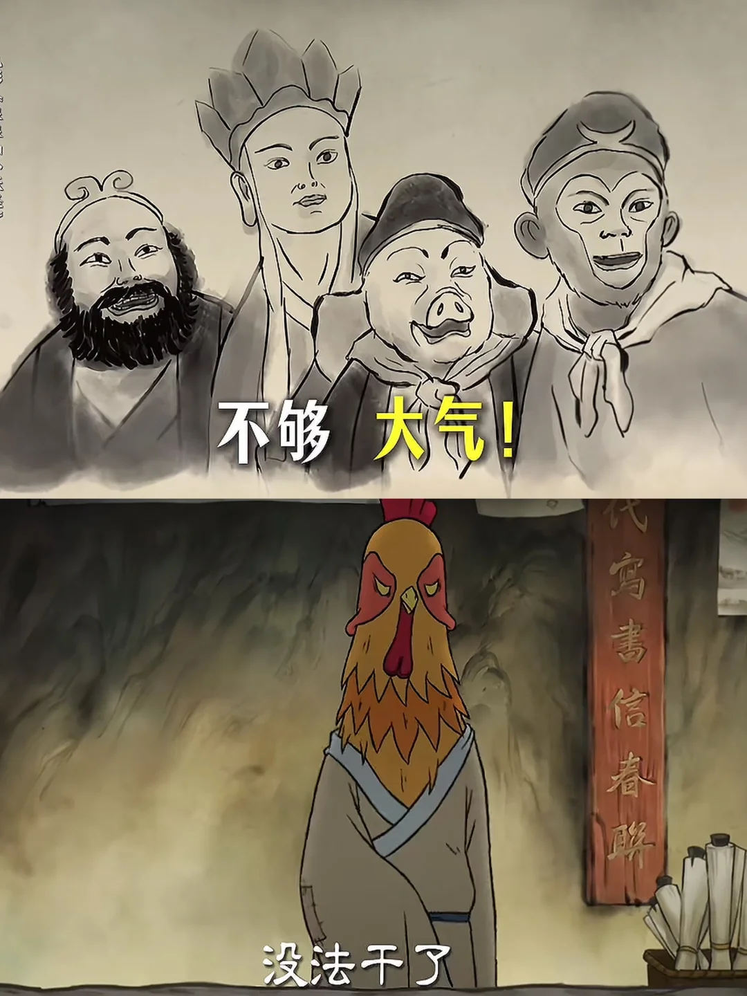 从敬业程度上看,鸡画师绝对是爱岗敬业的楷模。面对小猪妖的模糊要求,鸡画师任劳任怨,改了一版又一版,直到累到趴下。