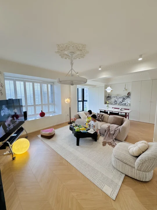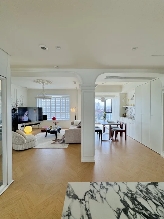 可以拆除一个卧室或者非承重墙,把客餐厅尽量设计成横厅,这样不仅家里会采光更高,也会显得家里更大