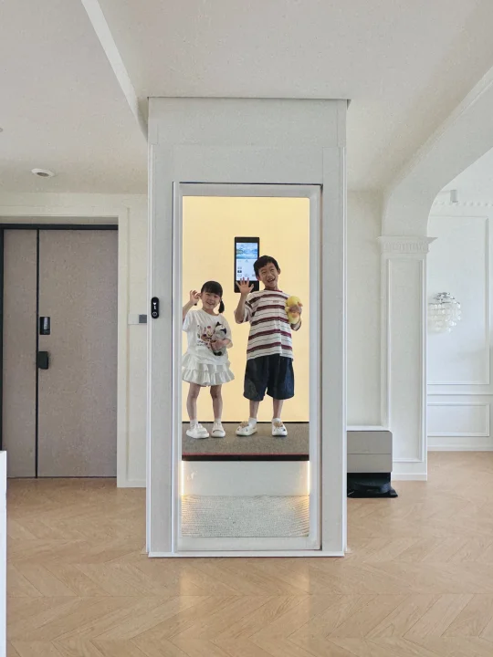 如果做楼梯楼上楼下至少要占用七八平,两层一共十五平左右了。而这个电梯每层只需要占用1.5平左右的空间