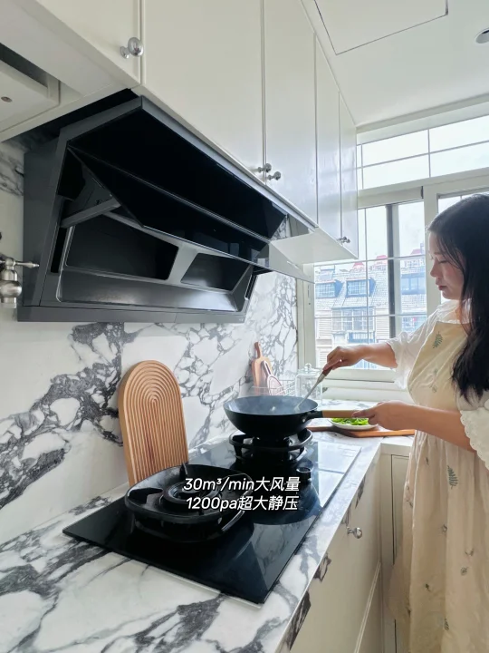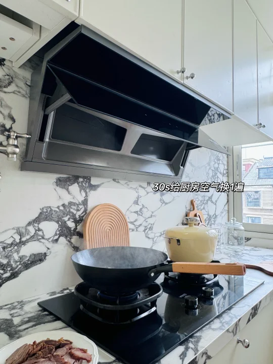 不到30秒给厨房换气1次,相当于买了台新风油烟机,油烟一冒头立马就被吸走了,开放式厨房再也不担心油烟