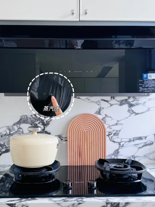 我是很怕洗碗洗油烟机的,所以我觉得油烟机是否好清洁也是很重要的,所以选了美的小西梅油烟机,它是有蒸汽洗2.0技术的,也就是平时不用管它只需要给它上好水,它就会自动用蒸汽来清洗油烟机了,全自动的真的很省心,110℃高温蒸汽把烟机内部冲刷的干干净净,最后把洗后的脏水倒掉就行