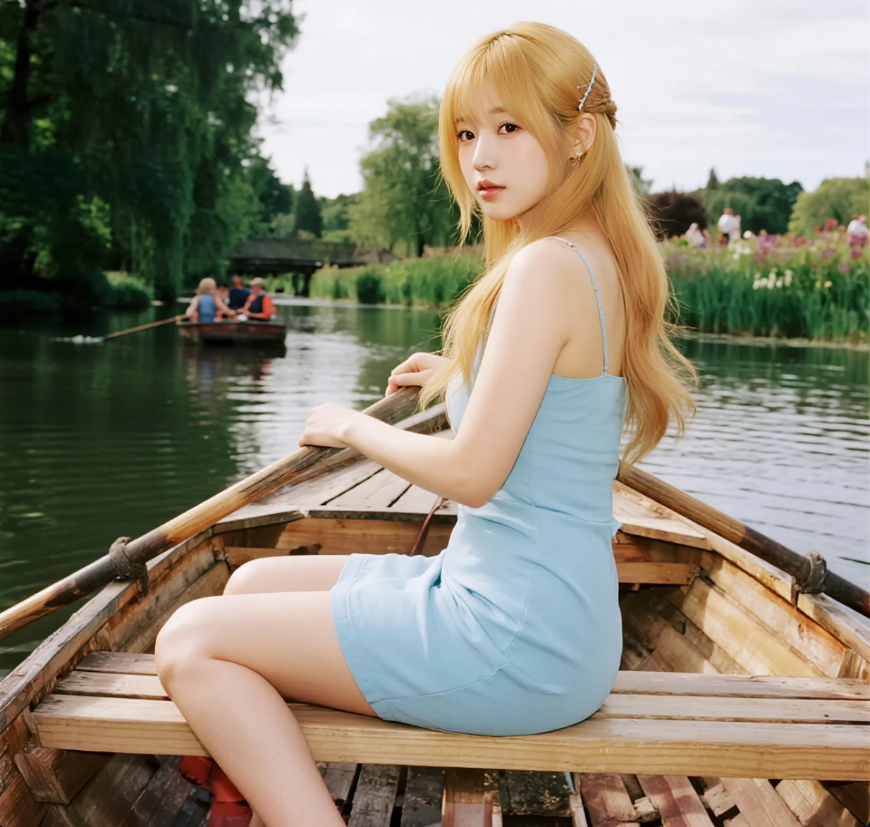 湖光倩影:白皙佳人轻舟泛波图集
