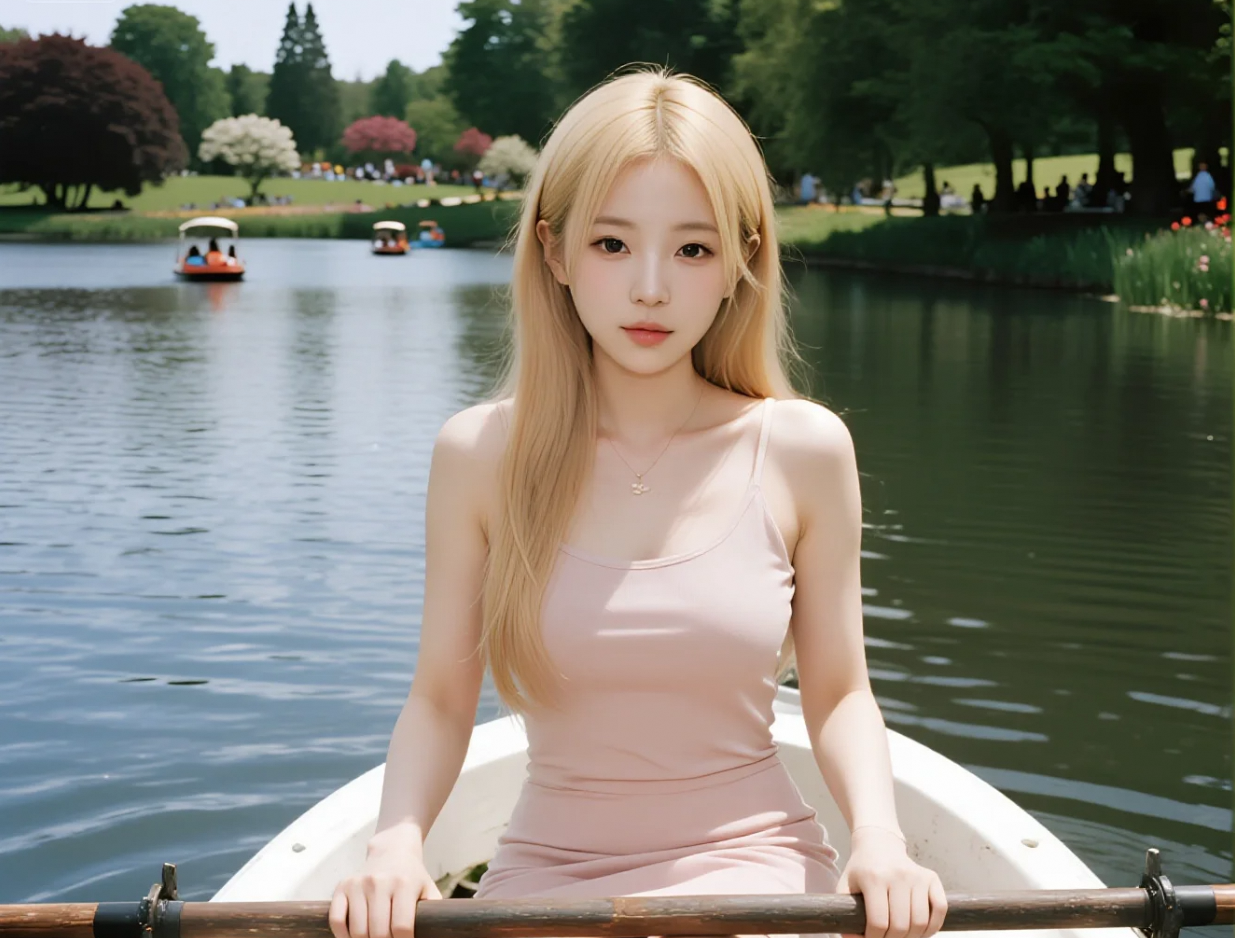 水映佳人颜:湖中划船的白皙小姐姐写真