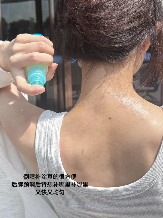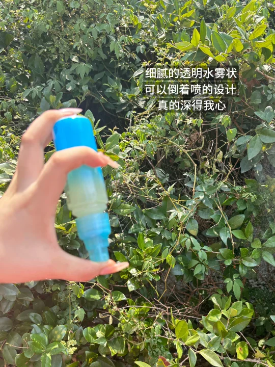 小蓝喷可以倒喷的喷头也是深得我心,以前在外面补防晒,像脖子,小腿补涂都很麻烦,要么找人帮忙涂,要么涂不匀。但是现在有小蓝喷,倒喷补涂就很方便,后脖颈啊后背啊小腿肚啊,想补哪里补哪里,又快又均匀。用之前不用摇,喷出来也是静音的,简直是把饭喂到咱们懒i人的嘴边上~