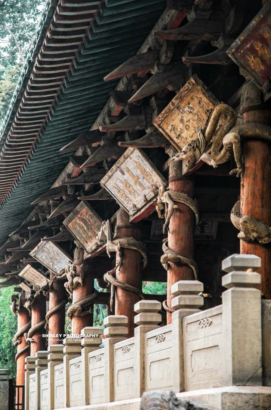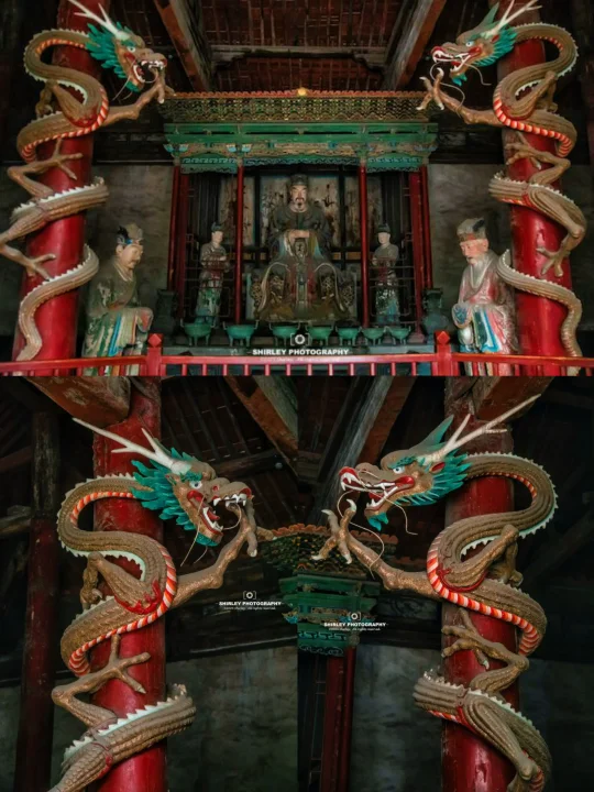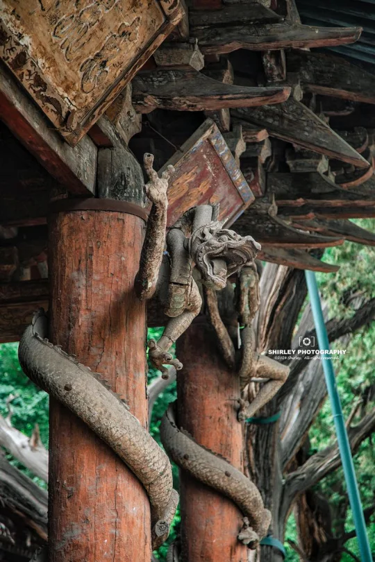 ▫️圣母殿前的木雕盘龙:北宋原物,全国唯y的完全立体的木雕盘龙