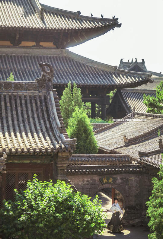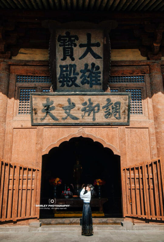 3️⃣拍好可以回到山门开始参观,沿途还可以再补一些中景小景,这时团队什么都进来了,10:30以后旅拍团队也做好妆造进场了,直到晚上关门都很热闹。后面的时间正好用来认真参观,毕竟无论是国内三大辽构或是八大辽构,华严寺都在其中