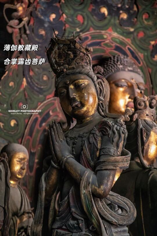 3️⃣下寺的薄伽教藏殿:辽构,寺内最古建筑。内有被郑振铎先生誉为“东方维纳斯”的合掌露齿菩萨;以及被梁思成先生叹称“海内孤品”的天宫楼阁,可惜普通游客见不到,华严寺广场上有个超大号复制版