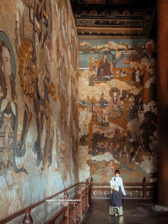 1️⃣事先买好🎫一开门就进去,最好排第一个,直奔普光明殿拍壁画大景。排队的时候就可以调好相机参数和想好动作了。只有1分钟时间,不一会人就占满整个大殿了