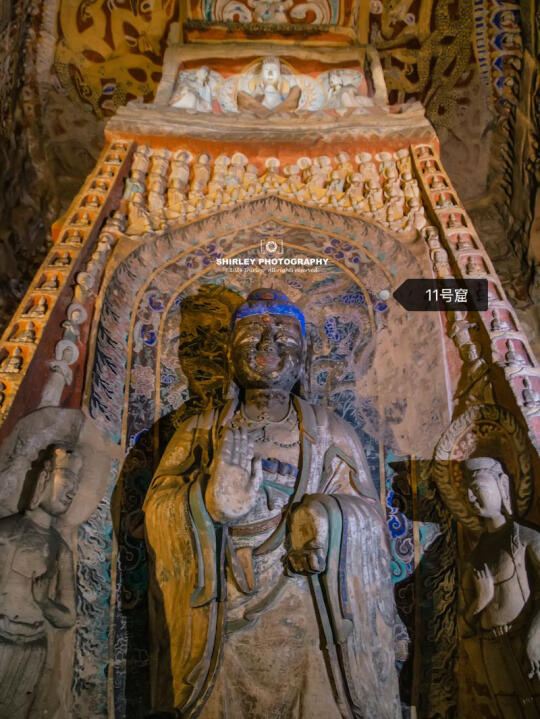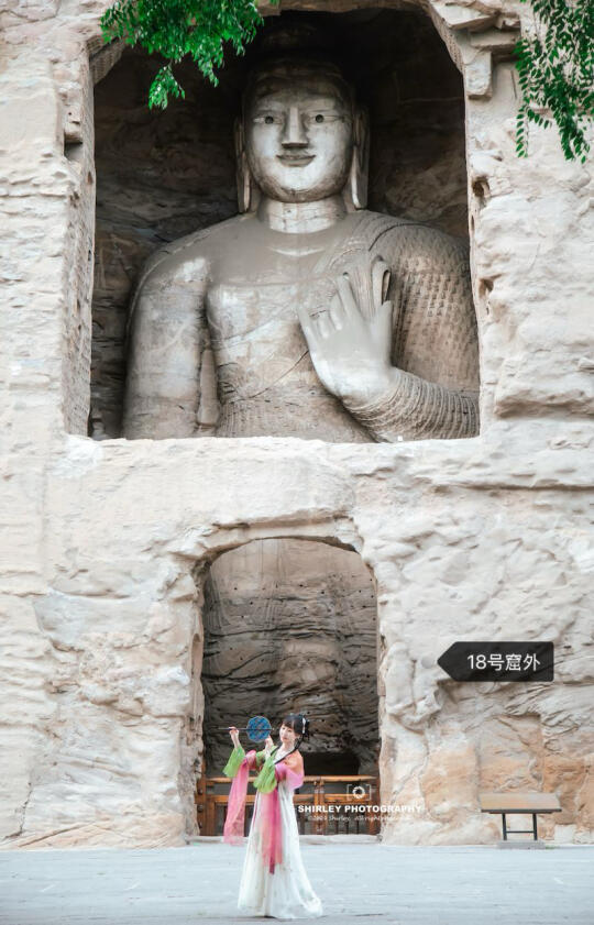 16-20号窟(昙曜五窟):早期石窟,对应北魏五帝。体量庞大,20号窟露天大佛是云冈最著名的标志!
