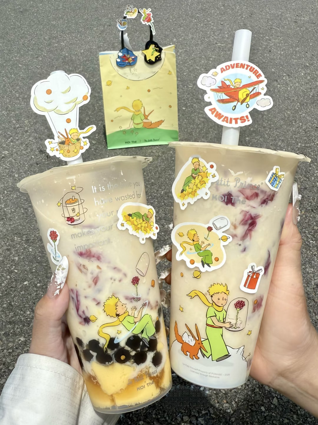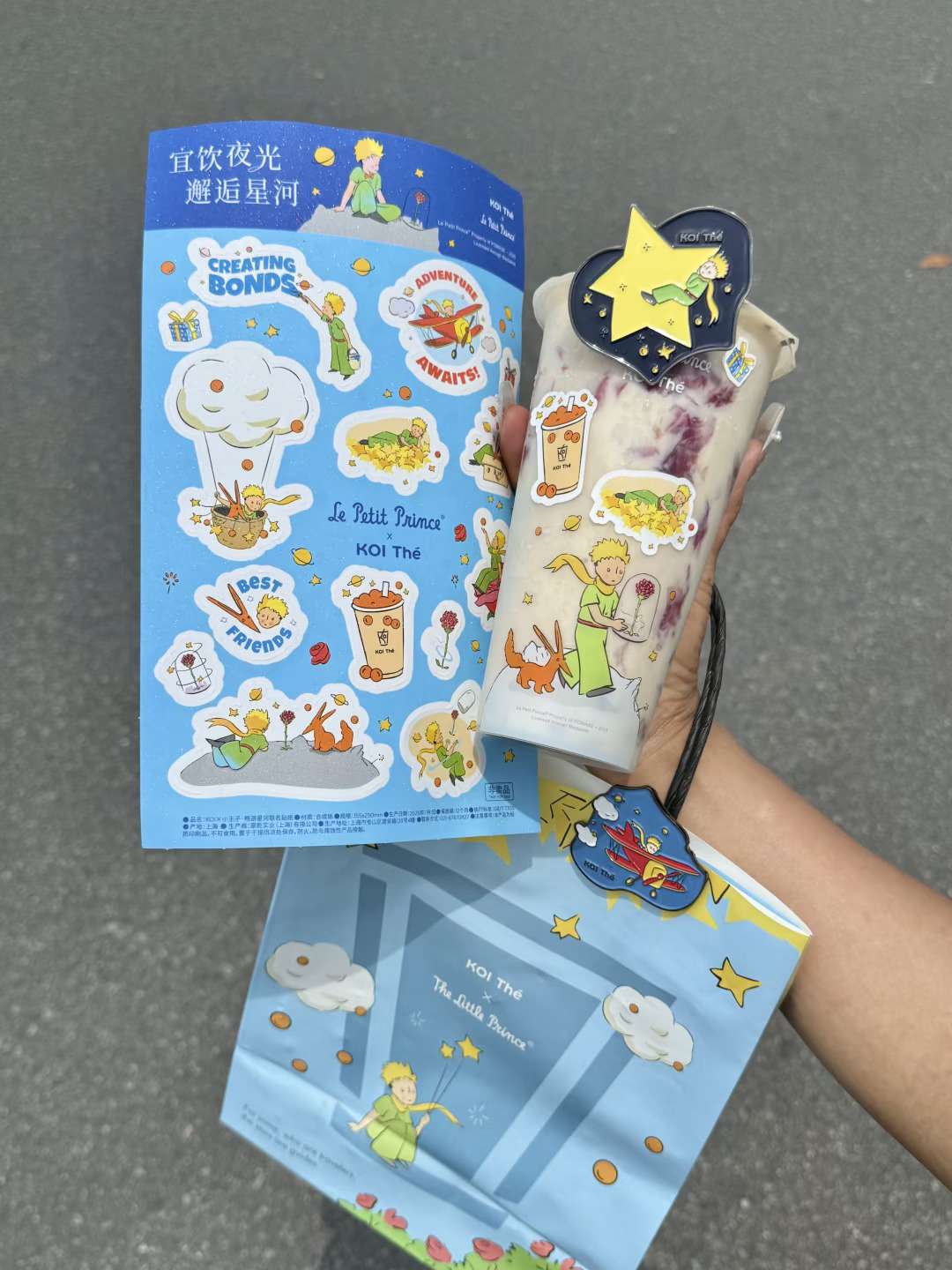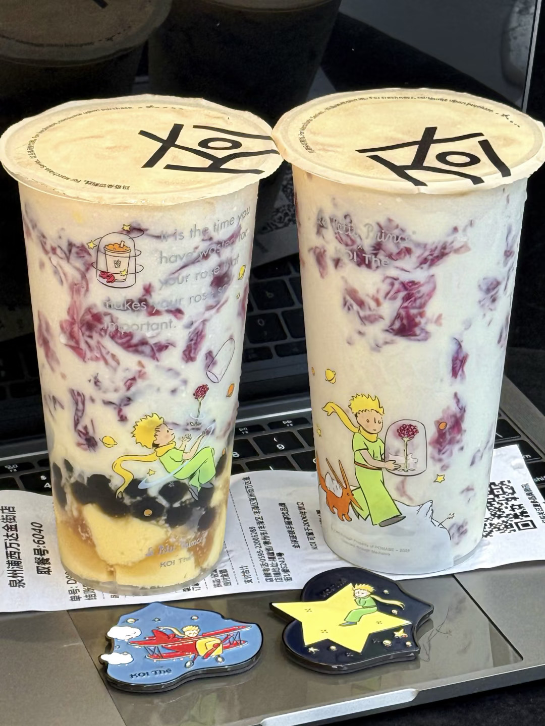 是真的!!koi和小王子联动! 有小王子联名冰箱贴、贴纸、主题杯和双杯袋….都好可爱啊!!! · ✔玫瑰星河·布蕾金乌龙+少冰+不另外加糖 一口就沦陷了。。玫瑰花挂壁真的好好看!味道十分香浓!搭配冻顶乌龙,好像在喝液体版云南鲜花饼!!还能嚼到超多布蕾和波霸!口感层次爆炸丰富😋 ✔玫瑰星河·乳酪金乌龙+少冰+微糖 不开玩笑,感觉是俺喝过最好喝的玫瑰奶茶!玫瑰乳酪挂壁加上乌龙茶超清爽超好喝!!连对玫瑰无感的朋友都要能炫光的程度。。。你真是让我越来越惊喜了koi ·