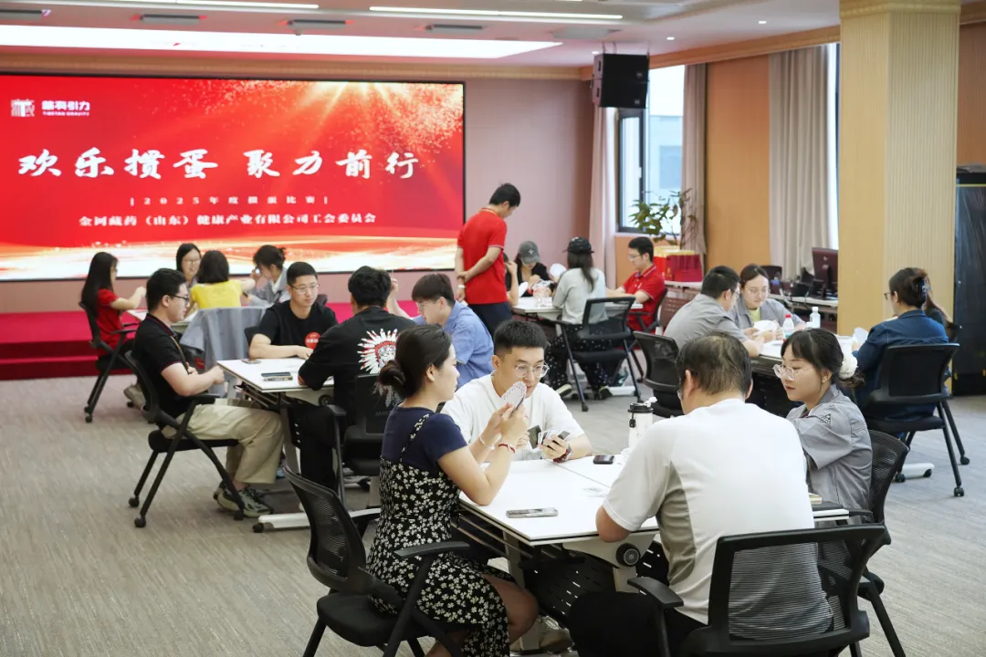 为丰富员工业余文化生活,增进跨部门沟通与团队凝聚力,营造积极向上、协作共赢的企业氛围,金诃藏药(山东)健康产业有限公司(以下简称“金诃山健”)于2025年8月30日上午成功举办了以“欢乐掼蛋,聚力前行”为主题的首次掼蛋友谊赛。本次活动吸引了众多员工踊跃参与,现场气氛热烈而有序。