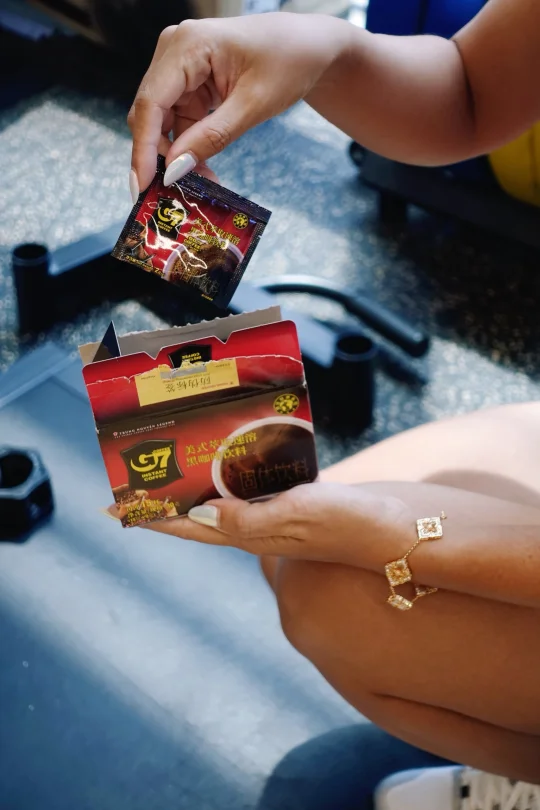2. 专注度MAX!拍训练视频或者编排新动作时,思路特别容易卡壳,来一杯G7咖啡,罗布斯塔豆双倍咖啡因,感觉脑子里的“雾”被吹散了,专注力提升一大截,想动作、数次数都贼清晰!
