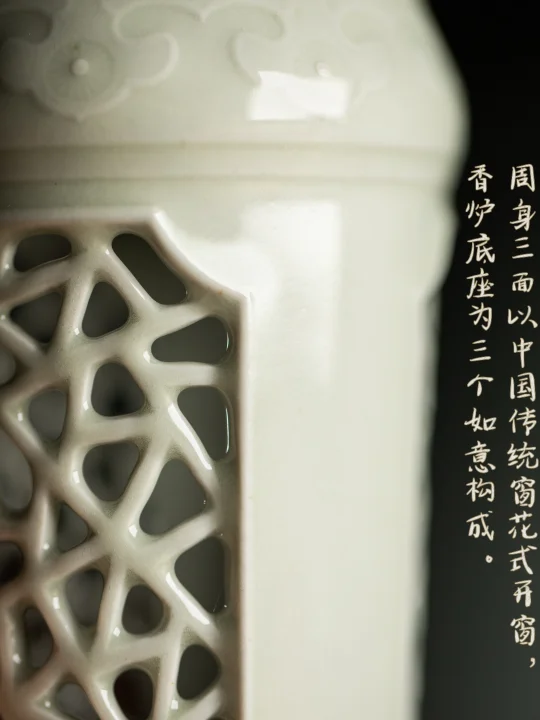 一线烟垂直穿过岁岁吉祥的镂雕——