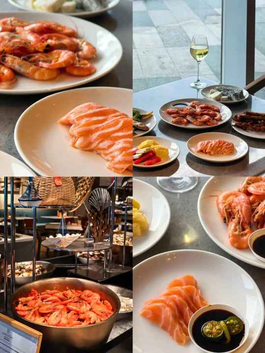 西餐厅中午单点,早晨和晚上是自助餐。自助早餐品种丰富,特色北海伊面值得一试。自助晚餐强烈推荐三文鱼刺身!完全是深海大肥猪,脂肪线非常漂亮。