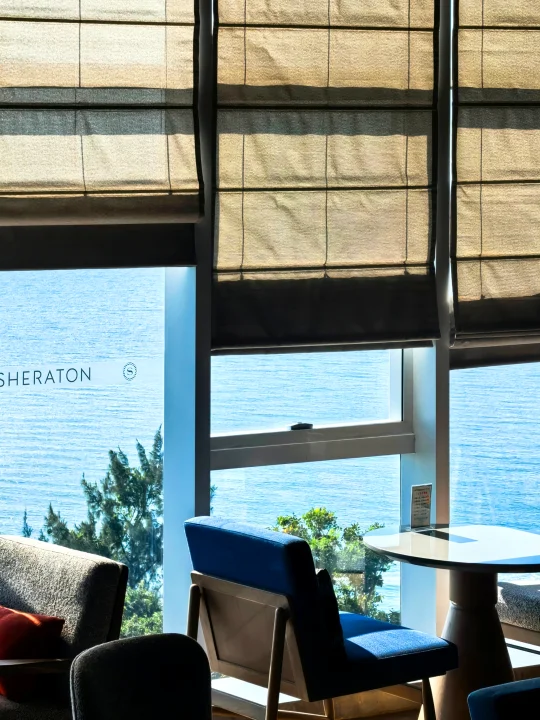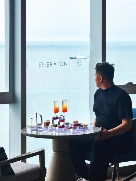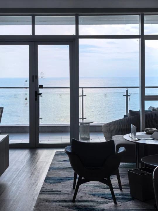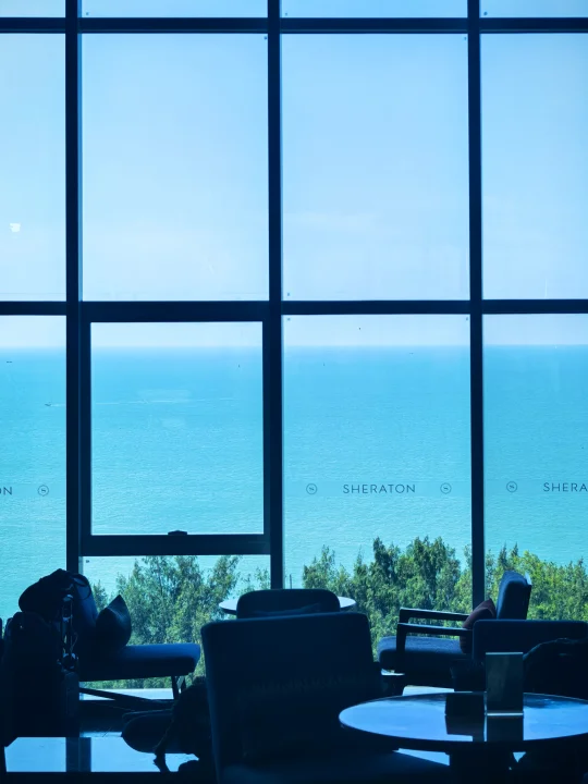 酒店在北海最美日落点冠头岭,海景真的绝美,尤其是日落时分的橘子海尤其浪漫。大堂吧一整面超高海景落地玻璃窗完美框住了绝美的海景,把整个酒店的调性都拔高了很多。特别是开船节的时候,千帆竞发非常震撼。即使不住在这里,因为大堂吧的价格很良心,日落时分花几十块点一杯来这里坐一下也可以享受冠头岭的日落moment。